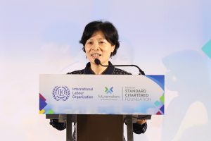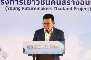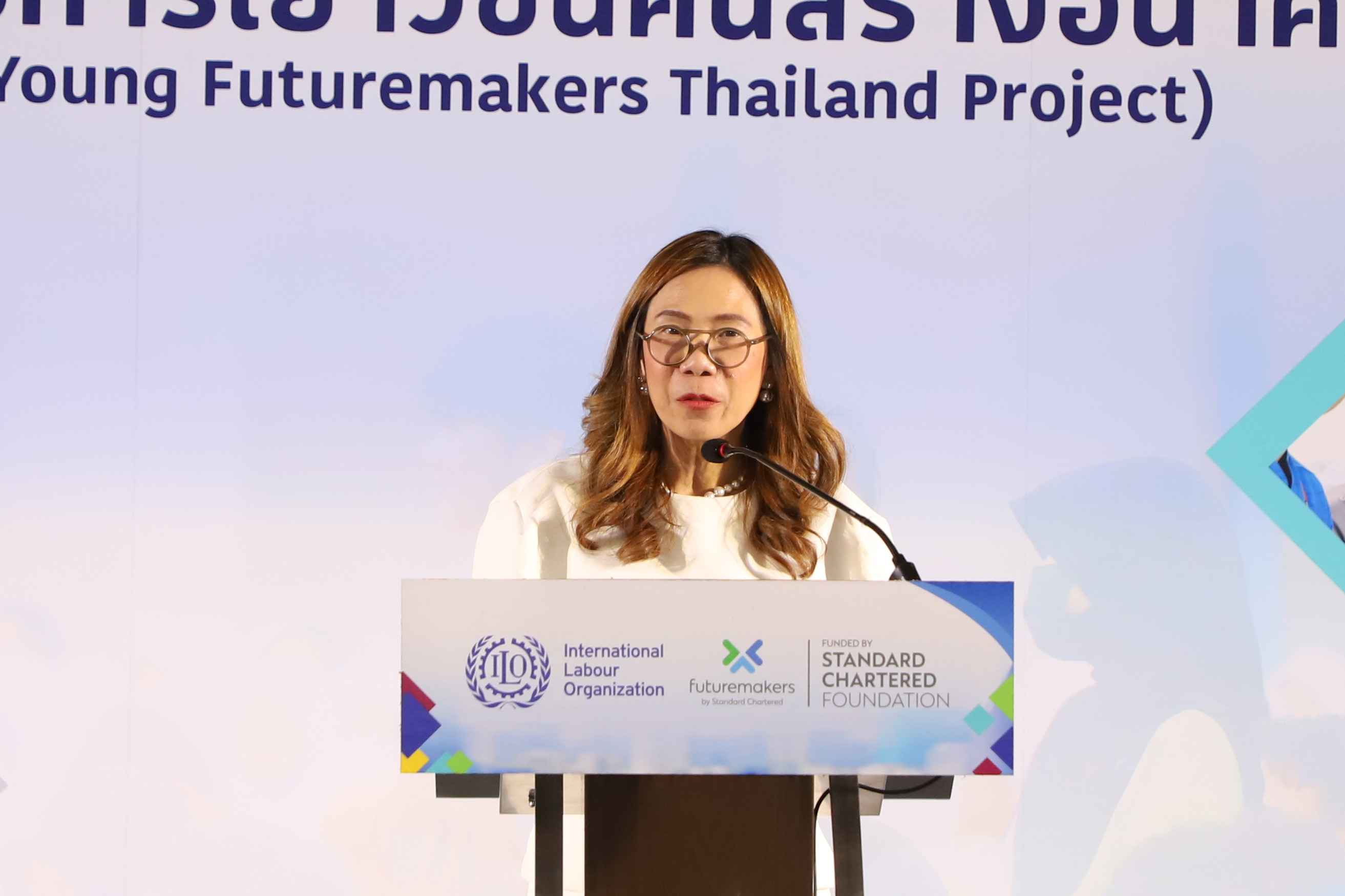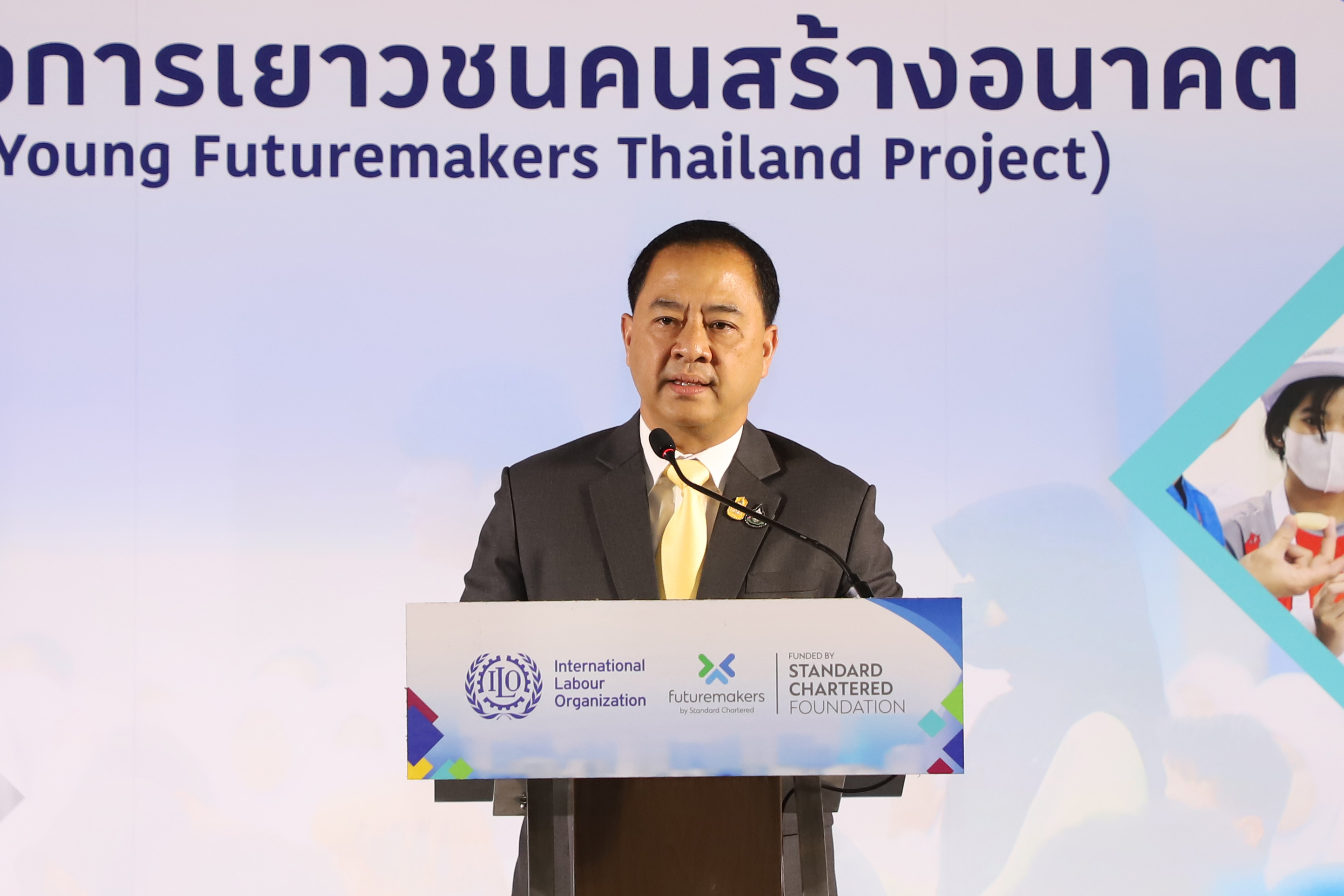กระทรวงแรงงานขอชื่นชมและขอขอบคุณมูลนิธิสแตนดาร์ดชาร์เตอร์ด ที่สนับสนุนการดำเนินโครงการมาอย่างต่อเนื่อง ตั้งแต่ระยะที่ 1 – 2 และขอบคุณองค์การแรงงานระหว่างประเทศ (ILO) ที่ได้ริเริ่มโครงการนี้ขึ้นมา และมีความมุ่งมั่นอย่างแท้จริงในการช่วยเหลือเยาวชนทั้งหญิงและชาย ผู้ซึ่งเป็นกำลังหลักที่สำคัญของประเทศ อย่างที่ทุกท่านทราบกันดีว่า แรงงานเยาวชนเหล่านี้มีความสำคัญต่อการขับเคลื่อนเศรษฐกิจของประเทศและจำเป็นต้องได้รับการพัฒนาทักษะทางสังคม และเสริมสร้างความสามารถ เพื่อให้ตรงกับความต้องการของตลาดแรงงาน ผ่านกิจกรรมต่างๆของโครงการฯ เช่น ตลาดนัดแรงงาน การแนะแนวอาชีพ และบริการจัดหางาน