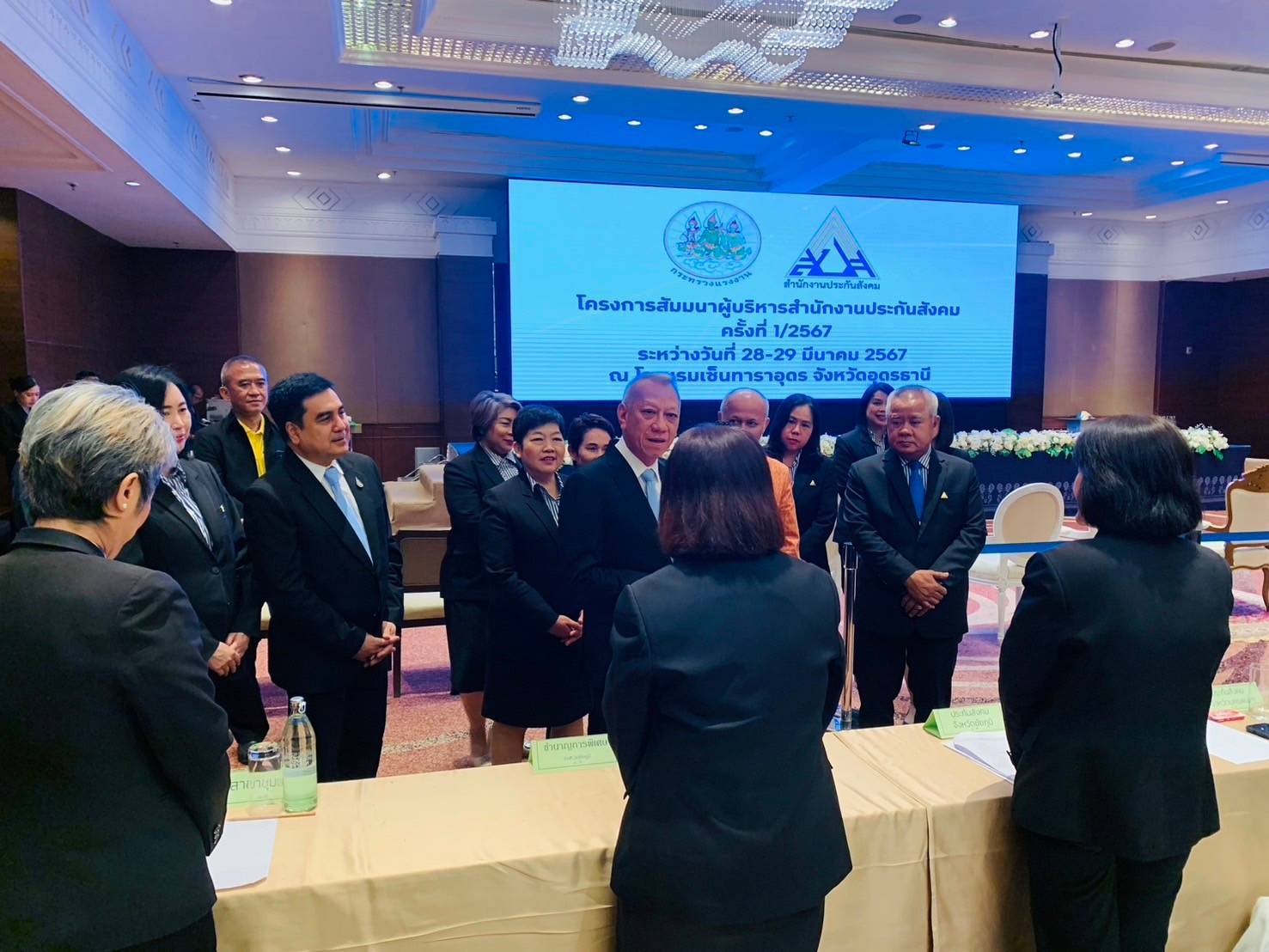 วันที่ 28 มีนาคม 2567 เวลา 09.00 น. นายพิพัฒน์ รัชกิจประการ รัฐมนตรีว่าการกระทรวงแรงงาน เป็นประธานในพิธีเปิดโครงการสัมมนาผู้บริหารสำนักงานประกันสังคม ครั้งที่ 1/2567 โดยนายไพโรจน์ โชติกเสถียร ปลัดกระทรวงแรงงาน มอบหมายให้ นายนันทชัย ปัญญาสุรฤทธิ์ ผู้ตรวจราชการกระทรวงแรงงาน เป็นผู้แทนปลัดกระทรวงแรงงาน เข้าร่วมเป็นเกียรติในพิธีเปิดโครงการฯ ดังกล่าว ณ โรงแรมเซ็นทารา อุดร จังหวัดอุดรธานี