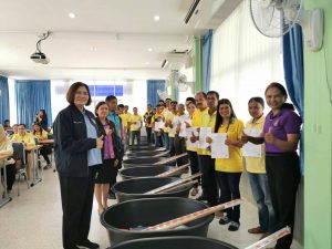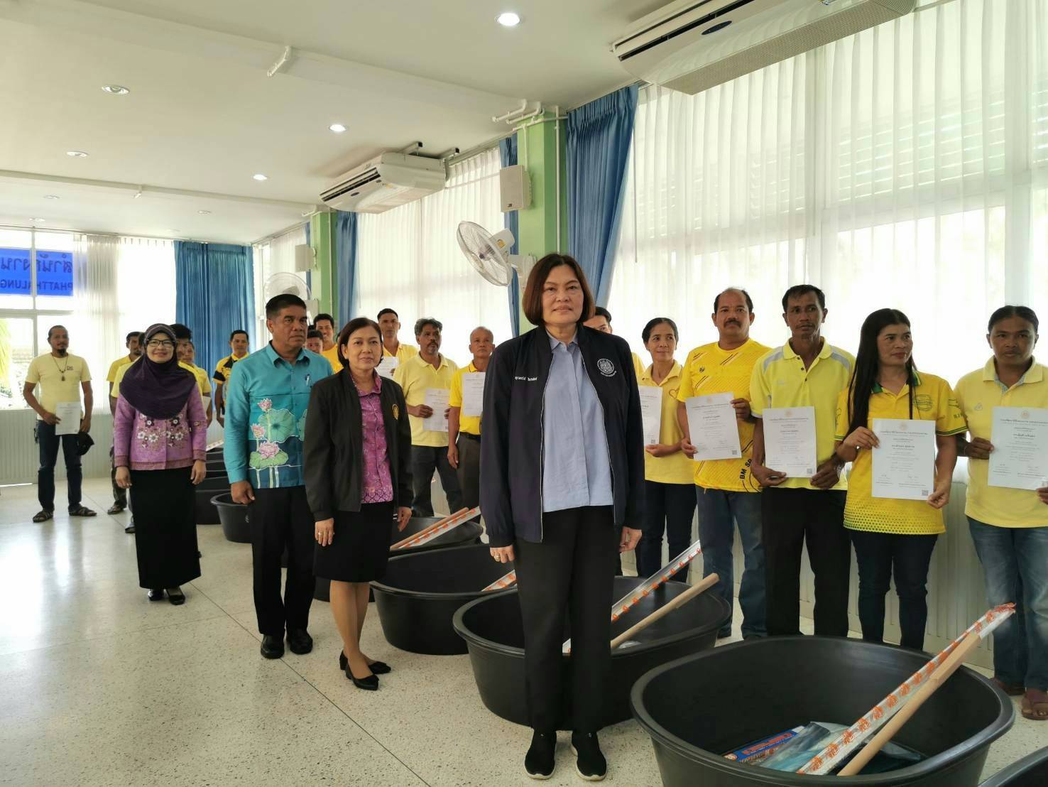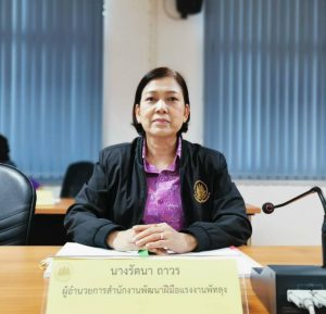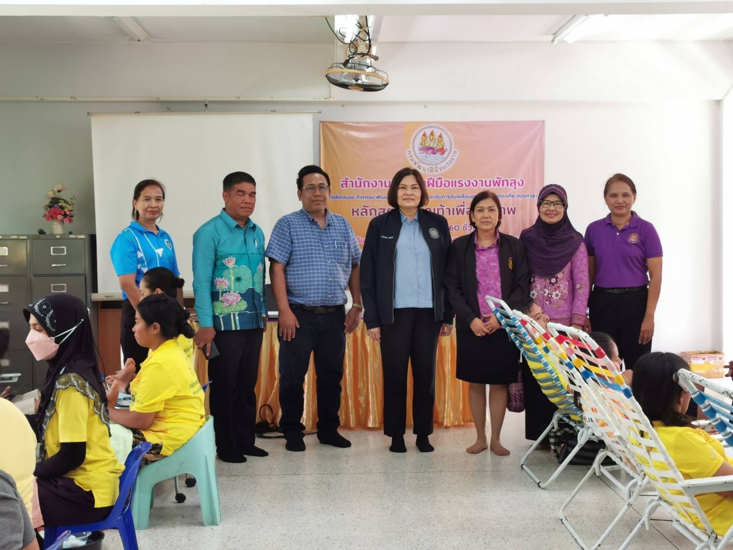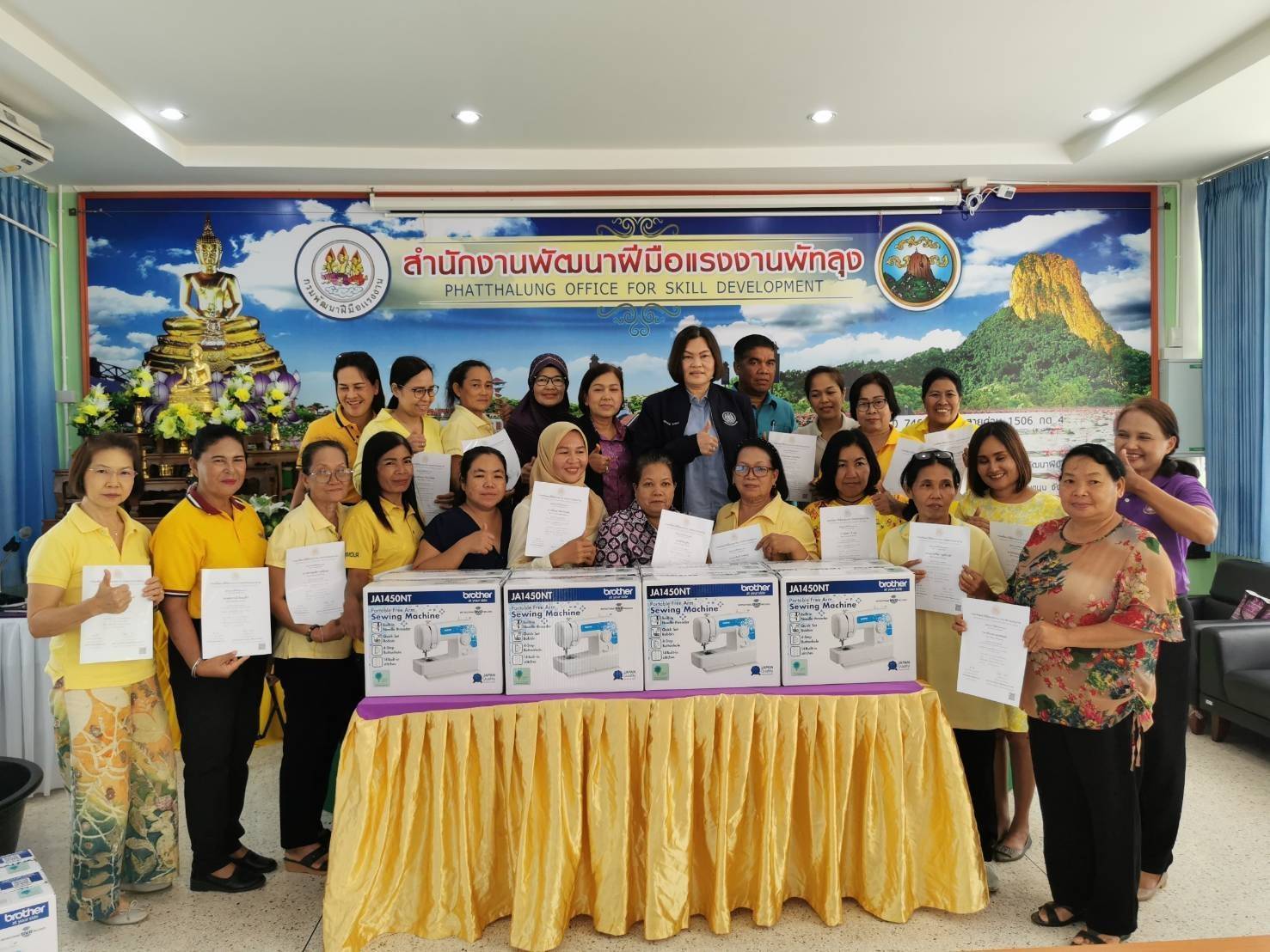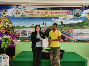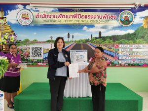 จากนั้น ผู้ตรวจราชการกระทรวงแรงงาน เดินทางไปมอบวุฒิบัตรและเครื่องมือพื้นฐานชุดการฝึก (ชุดเครื่องมือทำมาหากิน) สาขาตัดเย็บเสื้อผ้าและสาขาปูนปั้นเพื่องานประดับ รวมทั้งสิ้น 43 คน พร้อมทั้งตรวจเยี่ยมให้กำลังใจผู้เข้ารับการฝึกอบรมโครงการพัฒนาทักษะเฉพาะของแรงงานอิสระยุค 4.0 (Gig worker) ประเภทการฝึกยกระดับฝีมือ สาขาช่างปรับอากาศ และผู้เข้ารับการฝึกอบรมหลักสูตรนวดเท้าเพื่อสุขภาพ ณ สำนักงานพัฒนาฝีมือแรงงานพัทลุง ตำบลโตนดด้วน อำเภอควนขนุน จังหวัดพัทลุง