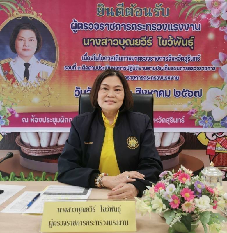 วันที่ 26 สิงหาคม 2567 นางสาวบุณยวีร์ ไขว้พันธุ์ ผู้ตรวจราชการกระทรวงแรงงาน ประชุมคณะทำงานเฉพาะกิจป้องกันการค้ามนุษย์ด้านแรงงานจังหวัดสุรินทร์ เพื่อติดตามผลการขับเคลื่อนการดำเนินงานการป้องกันการแสวงหาประโยชน์ด้านแรงงานที่อาจนำไปสู่การบังคับใช้แรงงานหรือการค้ามนุษย์ด้านแรงงาน พร้อมทั้งประชุมหัวหน้าส่วนราชการสังกัดกระทรวงแรงงานจังหวัดสุรินทร์ เพื่อตรวจติดติดตามประเมินผลการปฏิบัติงานตามแผนการตรวจราชการของผู้ตรวจราชการกระทรวงแรงงานประจำปีงบประมาณพ.ศ. 2567 รอบที่ 3 ( Monitoring/Evaluation) ณ ห้องประชุมผักกาดหวาน ชั้น 3 อาคารศูนย์ราชการจังหวัดสุรินทร์