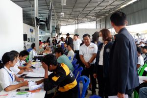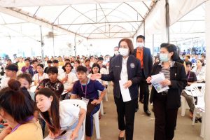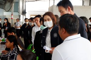 ต่อมาในช่วงบ่าย ลงพื้นที่พร้อมด้วยหัวหน้าส่วนราชการสังกัดกระทรวงแรงงานจังหวัดสมุทรสาครตรวจเยี่ยมศูนย์บริหารจัดการการทำงานของแรงงานเมียนมาแบบเบ็ดเสร็จในพื้นที่จังหวัดสมุทรสาคร (ศูนย์ CI จังหวัดสมุทรสาคร) ณ บริเวณตลาดทะเลไทย ตำบลท่าจีน อำเภอเมืองสมุทรสาคร จังหวัดสมุทรสาคร