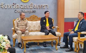 วันที่ 24 กรกฎาคม 2567 เวลา 09.00 น. นายสมาสภ์ ปัทมะสุคนธ์ ผู้ตรวจราชการกระทรวงแรงงาน ร่วมคณะ นายอุฬาร จิ๋วเจริญ ผู้ตรวจราชการสำนักนายกรัฐมนตรี หารือข้อราชการกับนายชลธี ยังตรง ผู้ว่าราชการจังหวัดฉะเชิงเทรา ณ ห้องรับรองศาลากลางจังหวัดฉะเชิงเทรา พร้อมประชุมตรวจติดตามแผนการตรวจราชการแบบบูรณาการของผู้ตรวจราชการประจำปีงบประมาณ พ.ศ. 2567 รอบที่ 2 ของผู้ตรวจราชการสำนักนายกรัฐมนตรี เขตตรวจราชการที่ 8 ร่วมกับผู้ตรวจราชการกระทรวง/กรม ณ ห้องประชุมสิริโสธร ชั้น 2 อาคารทันตกรรมและการแพทย์แผนไทย สำนักงานสาธารณสุขจังหวัดฉะเชิงเทรา