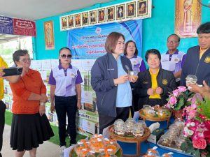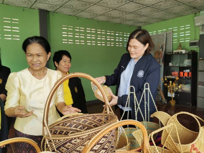 จากนั้น ผู้ตรวจราชการกระทรวงแรงงาน ได้ตรวจเยี่ยมและให้กำลังใจ กลุ่มผลิตภัณฑ์ชุมชนจักสานตะกร้าหวายเทียมบ้านโนนคร้อ กลุ่ม OTOP ตำบลบ้านขาม อำเภอจัตุรัส จังหวัดชัยภูมิ พร้อมทั้ง ได้แนะนำช่องทางการพัฒนาผลิตภัณฑ์ และช่องทางการตลาดให้แก่สมาชิกในกลุ่ม เพื่อเป็นการต่อยอดและสร้างมูลค่าผลิตภัณฑ์ เพื่อให้สมาชิกในกลุ่มได้มีรายได้ที่เพิ่มขึ้นอย่างยั่งยืน ด้วย