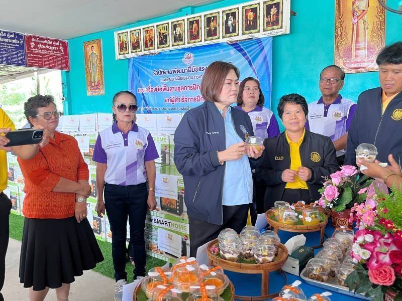 วันที่ 21 สิงหาคม 2567 นางสาวบุณยวีร์ ไขว้พันธุ์ ผู้ตรวจราชการกระทรวงแรงงาน ลงพื้นที่ จังหวัดชัยภูมิ เยี่ยมชมพร้อมทั้งมอบเครื่องมือพื้นฐานชุดการฝึก (เครื่องมือทำมาหากิน) จำนวน 20 ชุด ให้แก่ผู้ผ่านการฝึกอบรมโครงการเพิ่มทักษะแรงงานนอกระบบและกลุ่มเป้าหมายเฉพาะเพื่อเพิ่มโอกาสในการประกอบอาชีพ ในหลักสูตรการทำขนมฟิวชั่น โดยกลุ่มผู้เข้ารับการฝึกอบรม ประกอบด้วย ผู้มีบัตรสวัสดิการแห่งรัฐ ผู้รับจ้างทั่วไป ผู้ประกอบอาชีพอิสระ รวมถึงแรงงานไทยที่เดินทางกลับจากประเทศอิสราเอลที่ได้รับผลกระทบจากการสู้รบ ให้มีทักษะอาชีพพื้นฐานให้เป็นแรงงานที่มีฝีมือสอดคล้องกับมาตรฐานอาชีพ