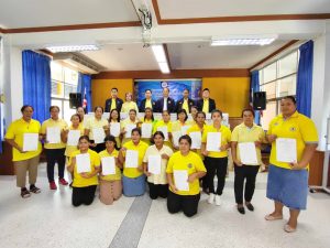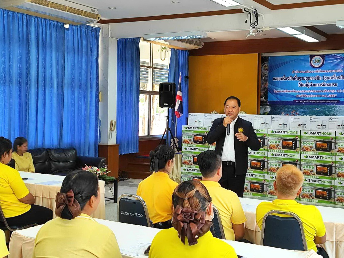 วันที่ 9 เมษายน 2567 ช่วงเช้า นายสมาสภ์ ปัทมะสุคนธ์ ผู้ตรวจราชการกระทรวงแรงงาน มอบเครื่องมือแก่ผู้ผ่านการฝึกอบรม โครงการพัฒนาทักษะเฉพาะของแรงงานอิสระยุค 4.0 (Gig Worker) หลักสูตร การทำขนมฟิวชั่น จำนวน 20 คน และมอบวุฒิบัตรผ่านการฝึกอบรมโครงการพัฒนาศักยภาพของบุคลากรและผู้ประกอบการในอุตสาหกรรมการท่องเที่ยว หลักสูตร การนวดลูกประคบด้วยน้ำมันร้อน จำนวน 22 คน