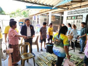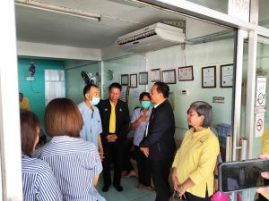 ต่อมาในช่วงบ่าย นายสมาสภ์ ปัทมะสุคนธ์ ผู้ตรวจราชการกระทรวงแรงงาน พร้อมด้วยหัวหน้าส่วนราชการสังกัดกระทรวงแรงงานจังหวัดตรัง ลงพื้นที่ตรวจเยี่ยมผู้ทุพพลภาพกองทุนประกันสังคม มาตรา 39 นายมัดทรี บินโตะบาย อายุ 46 ปี ตามองไม่เห็นทั้งสองข้าง ณ สถานที่วัดกุฎใน ตำบลทับเที่ยง อำเภอเมืองตรัง จังหวัดตรัง และลงพื้นที่ตรวจเยี่ยมกลุ่มจักรสานก้านจากบ้านนายอดทอง ผู้แทนกลุ่มผู้รับงานไปทำงานที่บ้านจังหวัดตรัง หมู่ที่ 5 ตำบลวังวน อำเภอกันตัง จังหวัดตรัง