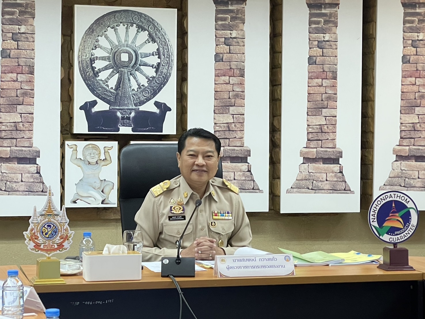 วันที่ 23 กรกฎาคม 2567 เวลา 10.00 น. นายสมพจน์ กวางแก้ว ผู้ตรวจราชการกระทรวงแรงงาน เป็นประธานการประชุมหัวหน้าส่วนราชการสังกัดกระทรวงแรงงานจังหวัดนครปฐม เพื่อตรวจติดตามประเมินผลการปฏิบัติงานตามแผนการตรวจราชการของผู้ตรวจราชการกระทรวงแรงงาน ประจำปีงบประมาณ พ.ศ. 2567 รอบที่ 3 (Monitoring/Evaluation) โดยมี นายสมชาติ สุภารี ผู้ตรวจราชการกรม กรมพัฒนาฝีมือแรงงาน และนางนิยดา เสนีย์มโนมัย ผู้ตรวจราชการกรม สำนักงานประกันสังคม เข้าร่วมประชุมด้วย ณ ห้องประชุมวัชรีรมยา ชั้น 3 ศาลากลางจังหวัดนครปฐม