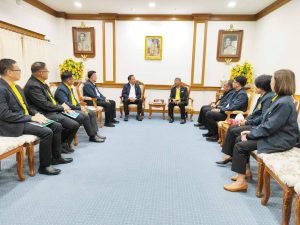 วันที่ 16 สิงหาคม 2567 นายสมาสภ์ ปัทมะสุคนธ์ ผู้ตรวจราชการกระทรวงแรงงาน พร้อมด้วยนายโอวาท ทองบ่อมะกรูด ผู้ตรวจราชการกรม กรมการจัดหางาน นายชาติวุฒิ ทองกัน ผู้ตรวจราชการกรม กรมพัฒนาฝีมือแรงงาน และนายกฤตภัทร ครุฑกุล ผู้ตรวจราชการกรม สำนักงานประกันสังคม เข้าพบ นายสนั่น สนธิเมือง รองผู้ว่าราชการจังหวัดปัตตานี เพื่อหารือข้อราชการ ณ ห้องรับรองผู้ว่าราชการจังหวัดปัตตานี อาคารศาลากลางจังหวัด ในการนี้ รองผู้ว่าราชการจังหวัดปัตตานีได้ให้ข้อแนะนำการทำงาน พร้อมชื่นชมหน่วยงานในสังกัดกระทรวงแรงงานว่าเป็นหน่วยงานที่มีความพร้อมเพรียงและทำงานตอบสนองยุทธศาสตร์จังหวัดได้อย่างดีเยี่ยม