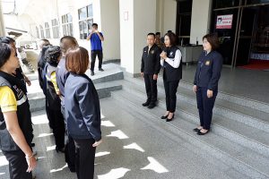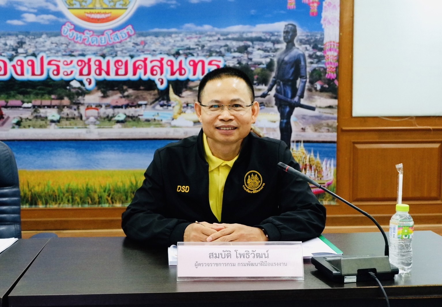 ต่อมา เวลา 09.30 น. นางมารศรี ใจรังษี ผู้ตรวจราชการกระทรวงแรงงาน เป็นประธานการประชุมหัวหน้าส่วนราชการสังกัดกระทรวงแรงงานร่วมกับ นายสมบัติ โพธิวัฒน์ ผู้ตรวจราชการกรม กรมพัฒนาฝีมือแรงงาน และนางวันทนา ณัฐพูลวัฒน์ ผู้ตรวจราชการกรม สำนักงานประกันสังคม เพื่อตรวจติดตามประเมินผลการปฏิบัติงานตามแผนการตรวจราชการของผู้ตรวจราชการกระทรวงแรงงาน ประจำปีงบประมาณ พ.ศ. 2567 รอบที่ 3 (Monitoring/Evaluation) ณ ห้องประชุมยศสุนทร ชั้น 3 ศาลากลางจังหวัดยโสธร พร้อมทั้ง มอบนโยบาย ข้อสั่งการและปล่อยแถวเจ้าหน้าที่หน่วยงานสังกัดกระทรวงแรงงานและหน่วยงานที่เกี่ยวข้องในการตรวจสถานประกอบการกลุ่มเสี่ยงเพื่อป้องกันการบังคับใช้แรงงานหรือบริการและการค้ามนุษย์ด้านแรงงาน ณ บริเวณหน้าศาลากลางจังหวัดยโสธร