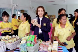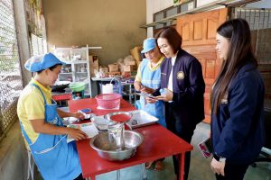 จากนั้นในช่วงบ่าย นางมารศรี ใจรังษี ผู้ตรวจราชการกระทรวงแรงงาน พร้อมด้วย นางวันทนา ณัฐพูลวัฒน์ ผู้ตรวจราชการกรม สำนักงานประกันสังคม และหัวหน้าส่วนราชการสังกัดกระทรวงแรงงานจังหวัดยโสธร ลงพื้นที่ตรวจเยี่ยมกลุ่มผู้ได้รับการพัฒนาทักษะอาชีพตามโครงการเพิ่มอาชีพ เพิ่มรายได้ โดยสำนักงานจัดหางานจังหวัดยโสธร กลุ่มแปรรูปถั่ว ณ ตำบลกู่จาน อำเภอคำเขื่อนแก้ว จังหวัดยโสธร