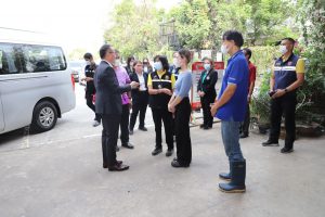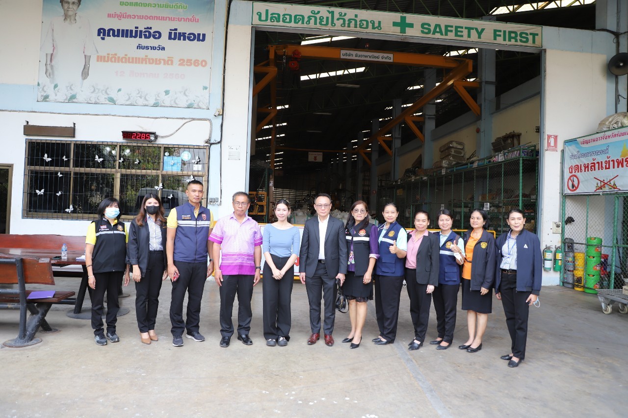 At 13.30, the Ministry of Labour’s Inspector-General, Mr. Somchai Morakotsriwan, and a delegation traveled to the area to inspect business establishments that import foreign workers to monitor and protect the rights of foreign workers, ensuring equal treatment with Thai workers. The Managing Directors, Mr. Sophon Meehom and Mrs. Thanya Meehom, and heads of government agencies under the Ministry of Labour in Roi Et Province gave a welcome at Thanwa Panich Co., Ltd., located at No. 133/1 Moo 6, Mu Mon Subdistrict, Chiang Khwan District, Roi Et Province. The company is in the recycling business. There are 90 employees, 40 Thais and 50 Myanmar workers, all with valid work permits.