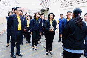 จากนั้นในช่วงบ่าย ผู้ตรวจราชการกระทรวงแรงงาน ร่วมลงพื้นที่ติดตามประเด็นนโยบายสำคัญของรัฐบาล การแก้ไขปัญหาการเปลี่ยนแปลงสภาพภูมิอากาศเพื่อมุ่งสู่สังคมคาร์บอนต่ำ ณ บริษัท นันยางการทออุตสาหกรรม ตำบลท่าไม้ อำเภอกระทุ่มแบน จังหวัดสมุทรสาคร