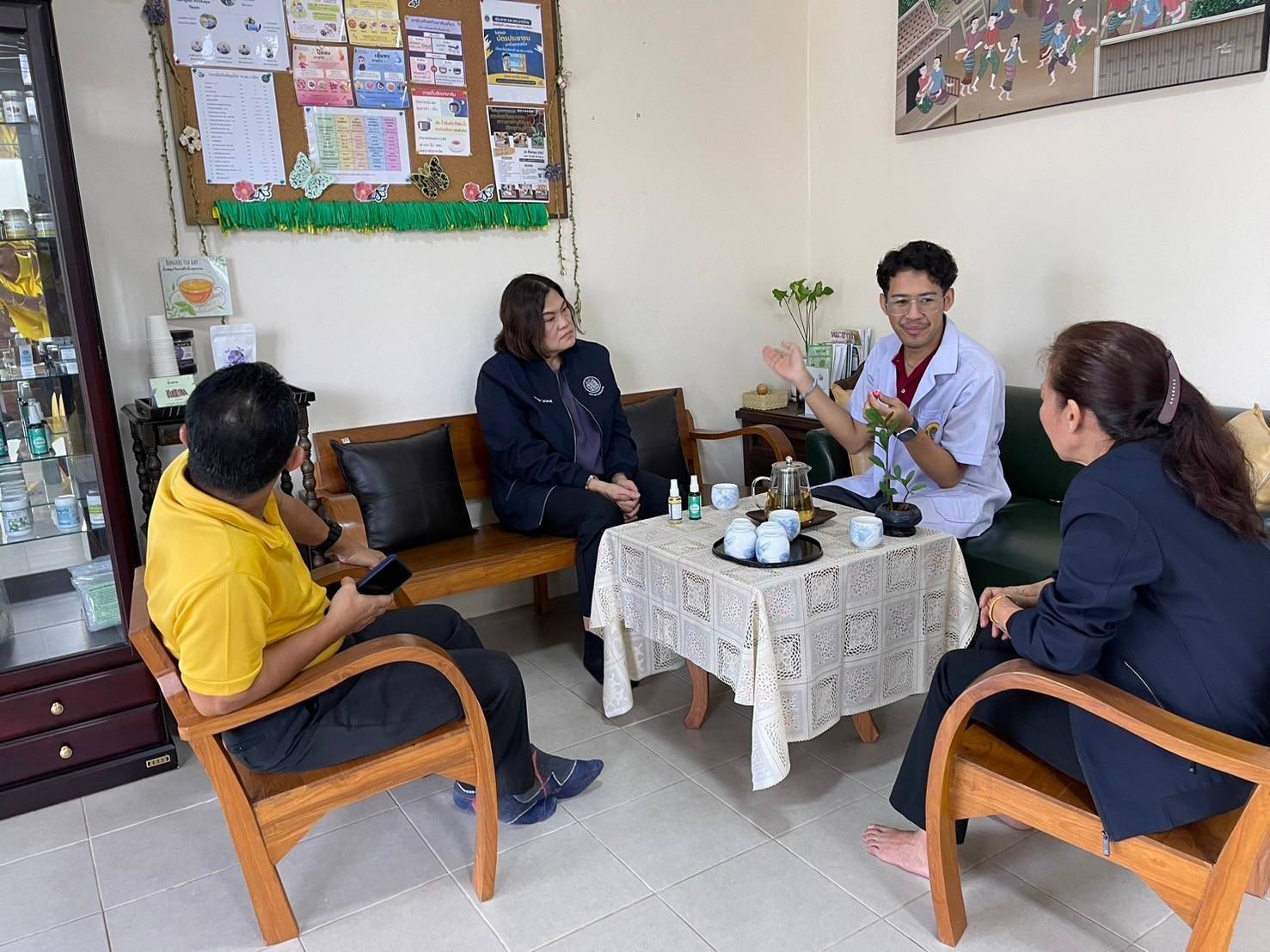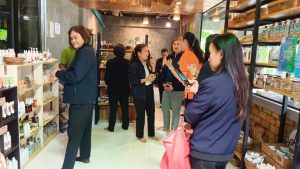 จากนั้น ในช่วงบ่าย นางสาวบุณยวีร์ ไขว้พันธุ์ ผู้ตรวจราชการกระทรวงแรงงาน และคณะ ลงพื้นที่เยี่ยมกลุ่มอาชีพผลิตภัณฑ์จากมะพร้าว ณ สวนลุงสงค์ จากนั้นเดินทางไปเยี่ยมกลุ่มวิสาหกิจชุมชนรักษ์สมุนไพร ตำบลบางไทร อำเภอเมืองจังหวัด สุราษฎร์ธานี โดยสำนักงานแรงงานจังหวัดสุราษฎร์ธานี ได้เข้าไปส่งเสริมการฝึกทักษะฝีมือ หลักสูตร การทำบรรจุหีบห่อสมุนไพรให้กับกลุ่มดังกล่าว