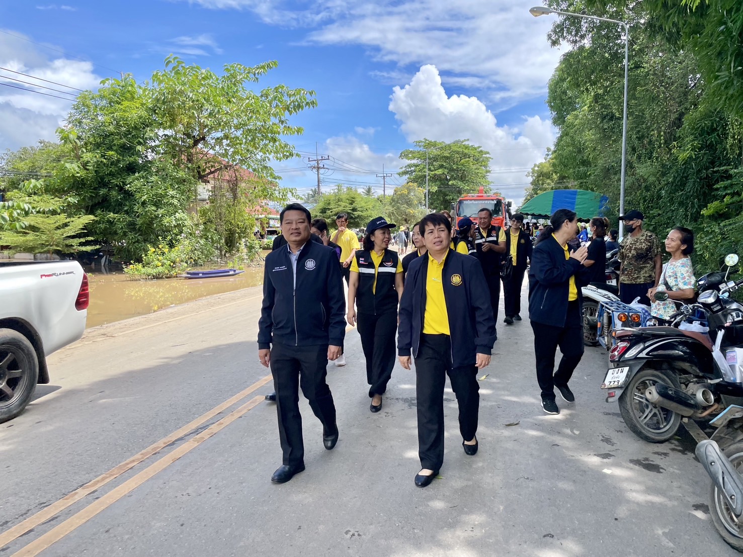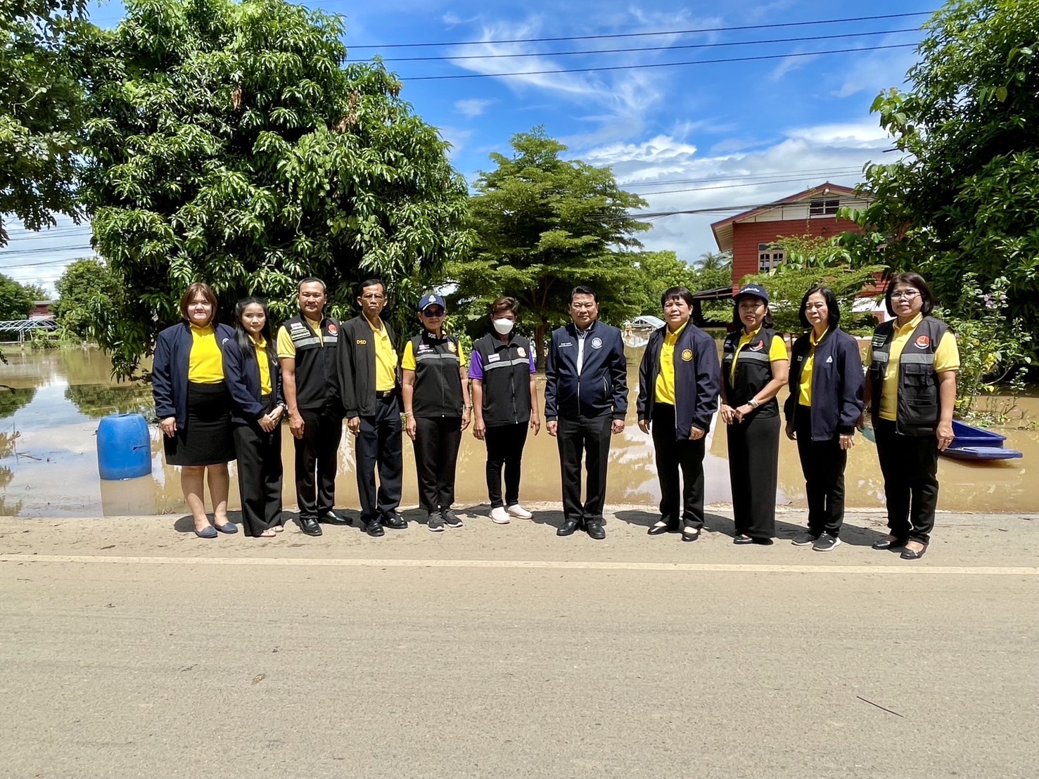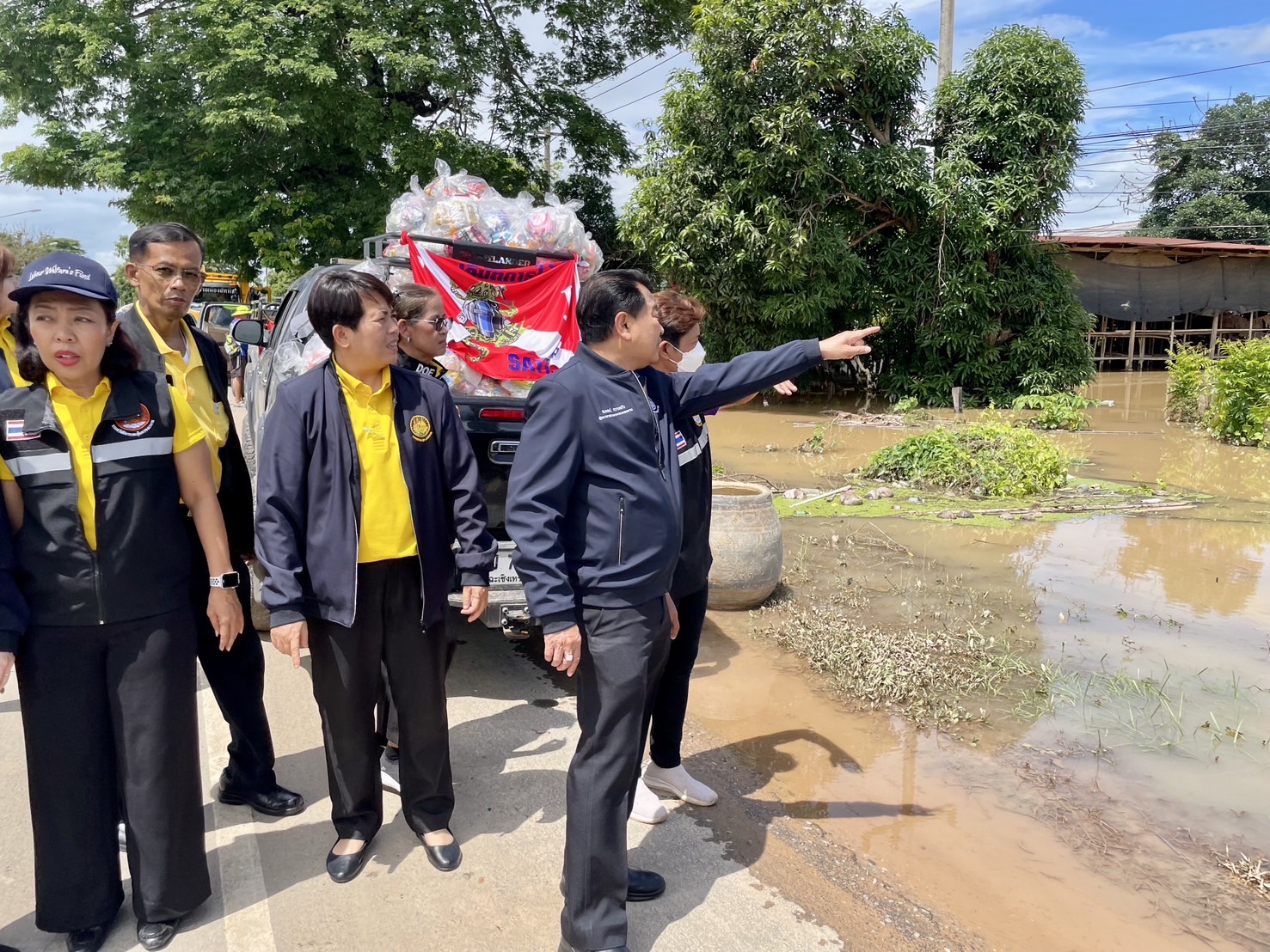 ต่อมาในช่วงบ่าย ผู้ตรวจราชการกระทรวงแรงงาน พร้อมด้วยหัวหน้าส่วนราชการสังกัดกระทรวงแรงงาน จังหวัดสุโขทัย ลงพื้นที่ตรวจเยี่ยมสถานการณ์น้ำท่วมจังหวัดสุโขทัย โดยร่วมมอบสิ่งของช่วยเหลือผู้ประสบภัยน้ำท่วม พร้อมทั้งให้กำลังใจเจ้าหน้าที่และผู้ประสบภัย ซึ่งมีอาสาสมัครแรงงานเป็นผู้ได้รับผลกระทบจากสถานการณ์น้ำท่วมในครั้งนี้ ณ ศูนย์ช่วยเหลือผู้ประสบภัย องค์การบริหารส่วนตำบลวังทอง อำเภอศรีสำโรง จังหวัดสุโขทัย