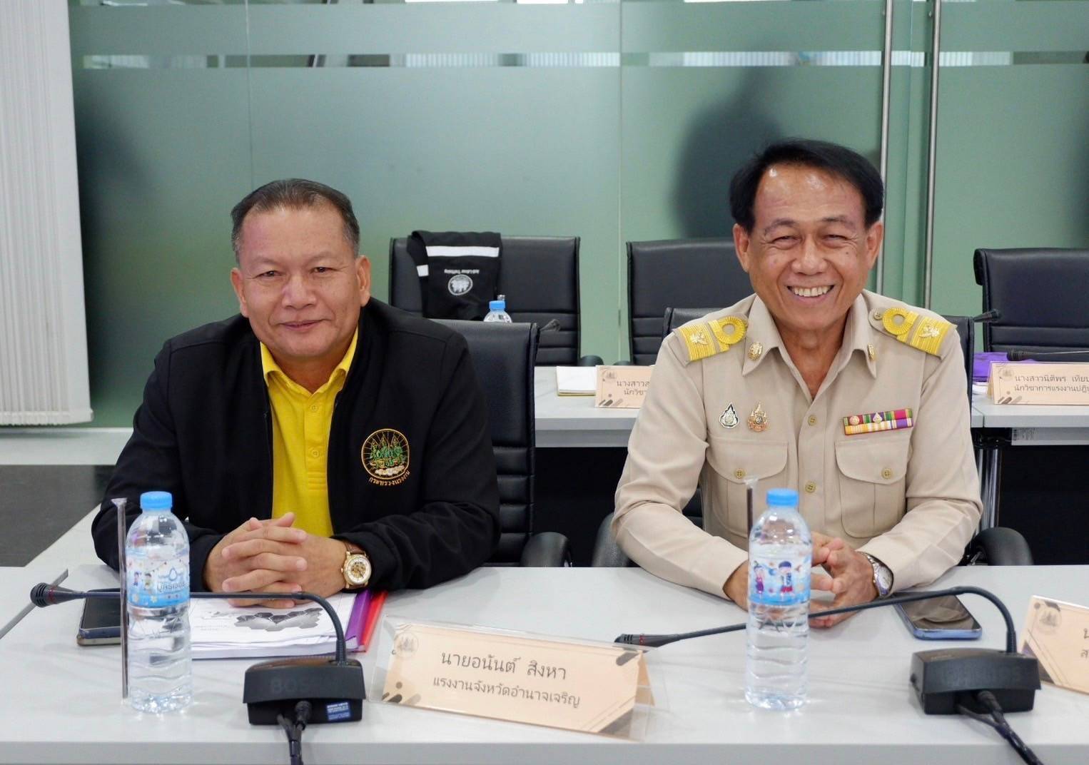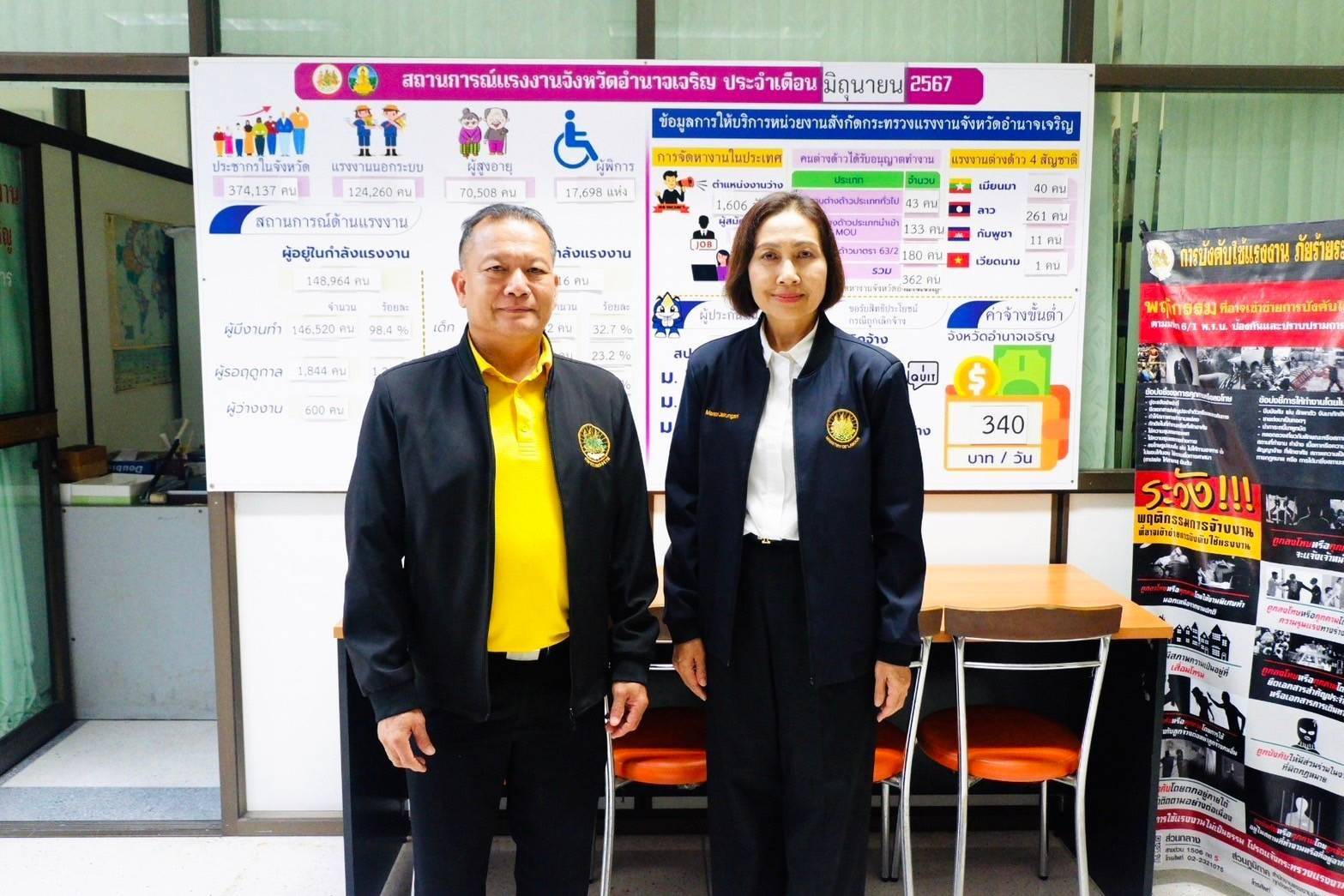 ต่อมา เวลา 10.30 น. นางมารศรี ใจรังษี ผู้ตรวจราชการกระทรวงแรงงาน เป็นประธานการประชุมหัวหน้าส่วนราชการสังกัดกระทรวงแรงงานร่วมกับ นายสมบัติ โพธิวัฒน์ ผู้ตรวจราชการกรม กรมพัฒนาฝีมือแรงงาน และนางวันทนา ณัฐพูลวัฒน์ ผู้ตรวจราชการกรม สำนักงานประกันสังคม เพื่อตรวจติดตามประเมินผลการปฏิบัติงานตามแผนการตรวจราชการของผู้ตรวจราชการกระทรวงแรงงาน ประจำปีงบประมาณ พ.ศ. 2567 รอบที่ 3 (Monitoring/Evaluation) ณ ห้องศูนย์ข้อมูลอำนาจเจริญ (BIG DATA AMNATCHAROEN) ชั้น 3 ศาลากลางจังหวัดอำนาจเจริญ พร้อมทั้ง มอบนโยบาย ข้อสั่งการและปล่อยแถวเจ้าหน้าที่หน่วยงานสังกัดกระทรวงแรงงานและหน่วยงานที่เกี่ยวข้องในการตรวจสถานประกอบการกลุ่มเสี่ยงเพื่อป้องกันการบังคับใช้แรงงานหรือบริการและการค้ามนุษย์ด้านแรงงาน ณ บริเวณหน้าศาลากลางจังหวัดอำนาจเจริญ
