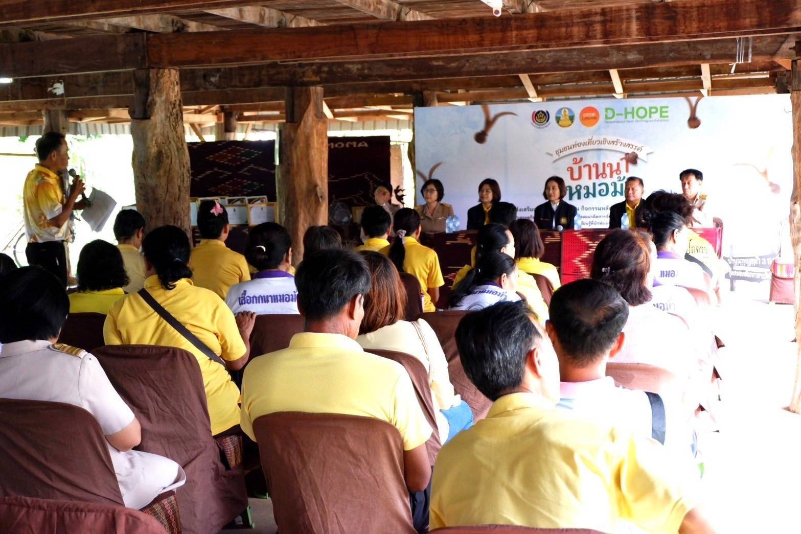 จากนั้นในช่วงบ่าย นางมารศรี ใจรังษี ผู้ตรวจราชการกระทรวงแรงงาน พร้อมด้วย นางวันทนา ณัฐพูลวัฒน์ ผู้ตรวจราชการกรม สำนักงานประกันสังคม และหัวหน้าส่วนราชการสังกัดกระทรวงแรงงานจังหวัดอำนาจเจริญ ลงพื้นที่ตรวจเยี่ยมชมรมแรงงานนอกระบบตำบลนาหมอม้า กลุ่มอาชีพอิสระทอเสื่อจากกก และกลุ่มกลองยาว โดยมี ผู้นำชุมชน อาสาสมัครแรงงาน และสมาชิกชมรม ร่วมให้การต้อนรับ ณ ตำบลนาหมอม้า อำเภอเมืองอำนาจเจริญ จังหวัดอำนาจเจริญ