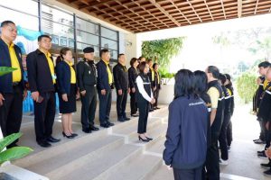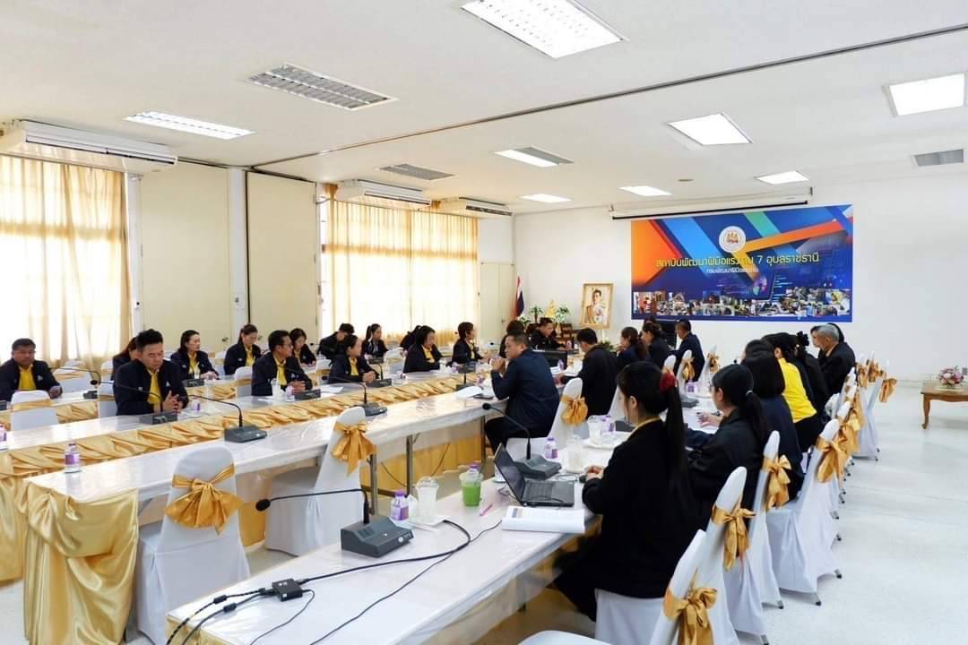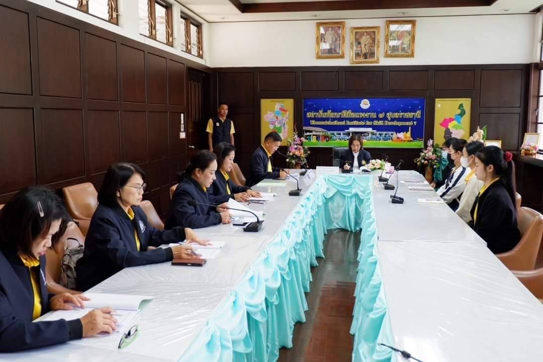 ต่อมา เวลา 09.00 น. นางมารศรี ใจรังษี ผู้ตรวจราชการกระทรวงแรงงาน เป็นประธานการประชุมหัวหน้าส่วนราชการสังกัดกระทรวงแรงงานร่วมกับนายสมบัติ โพธิวัฒน์ ผู้ตรวจราชการกรม กรมพัฒนาฝีมือแรงงาน และนางวันทนา ณัฐพูลวัฒน์ ผู้ตรวจราชการกรม สำนักงานประกันสังคม เพื่อตรวจติดตามประเมินผลการปฏิบัติงานตามแผนการตรวจราชการของผู้ตรวจราชการกระทรวงแรงงาน ประจำปีงบประมาณ พ.ศ. 2567 รอบที่ 3 (Monitoring/Evaluation) และตรวจติดตามการขับเคลื่อนเร่งรัดการ จัดระบบแรงงานต่างด้าวในพื้นที่จังหวัดชายทะเลและจังหวัดชายแดน ที่มีอาณาเขตติดต่อกับประเทศเพื่อนบ้าน ณ ห้องประชุมปทุมทิพย์ ชั้น 2 อาคารอำนวยการ สถาบันพัฒนาฝีมือแรงงาน 7 อุบลราชธานี พร้อมทั้ง มอบนโยบาย ข้อสั่งการ และปล่อยแถวเจ้าหน้าที่หน่วยงานสังกัดกระทรวงแรงงานและหน่วยงานที่เกี่ยวข้องในการตรวจสถานประกอบการกลุ่มเสี่ยงเพื่อป้องกันการบังคับใช้แรงงานหรือบริการและการค้ามนุษย์ด้านแรงงาน ณ บริเวณลานหน้าสถาบันพัฒนาฝีมือแรงงาน 7 อุบลราชธานี