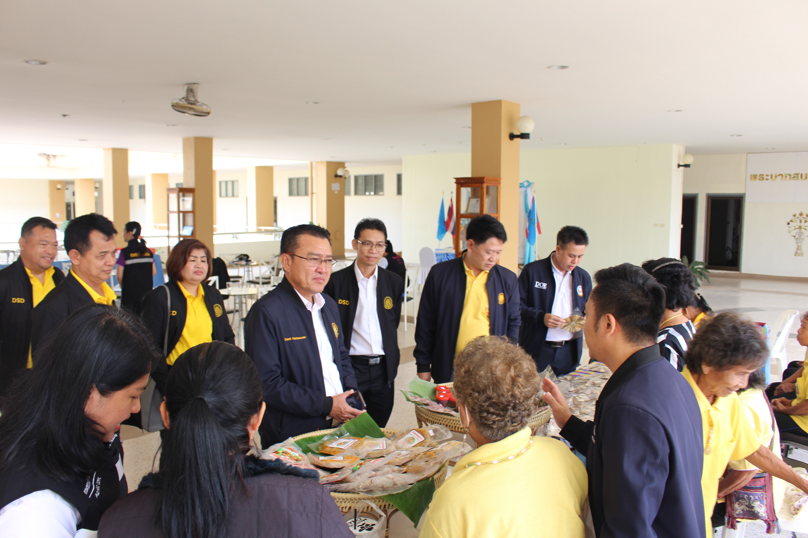 สำหรับช่วงบ่าย ผู้ตรวจราชการกระทรวงแรงงาน ได้ตรวจเยี่ยมกิจกรรม หนึ่งอำเภอ หนึ่งกลุ่มอาชีพ มั่นคง มั่งคั่ง และยั่งยืน โดยบัณฑิตแรงงาน ประจำปีงบประมาณ พ.ศ. 2567 ณ ห้องประชุมสถาบันพัฒนาฝีมือแรงงานนานาชาติ โดยเป็นกลุ่มอาชีพบ้านทุ่งฟ้าฮ่าม หมู่ที่ 5 ตำบลโยนก อำเภอเชียงแสน จังหวัดเชียงราย รวมกลุ่มเพื่อแปรรูปสินค้าจากปลาที่มีอยู่ในชุมชน เช่น ปลาส้ม กุนเชียงปลา ไส้อั่วปลา ปลาแดดเดียว เป็นต้น และกลุ่มอาชีพทอผ้า เพื่ออนุรักษ์ศิลปะของผ้าทอพื้นเมือง นอกจากนี้ ยังได้พบปะพูดคุยกับบุคลากรของหน่วยงานในสังกัดกระทรวงแรงงานจังหวัดเชียงราย