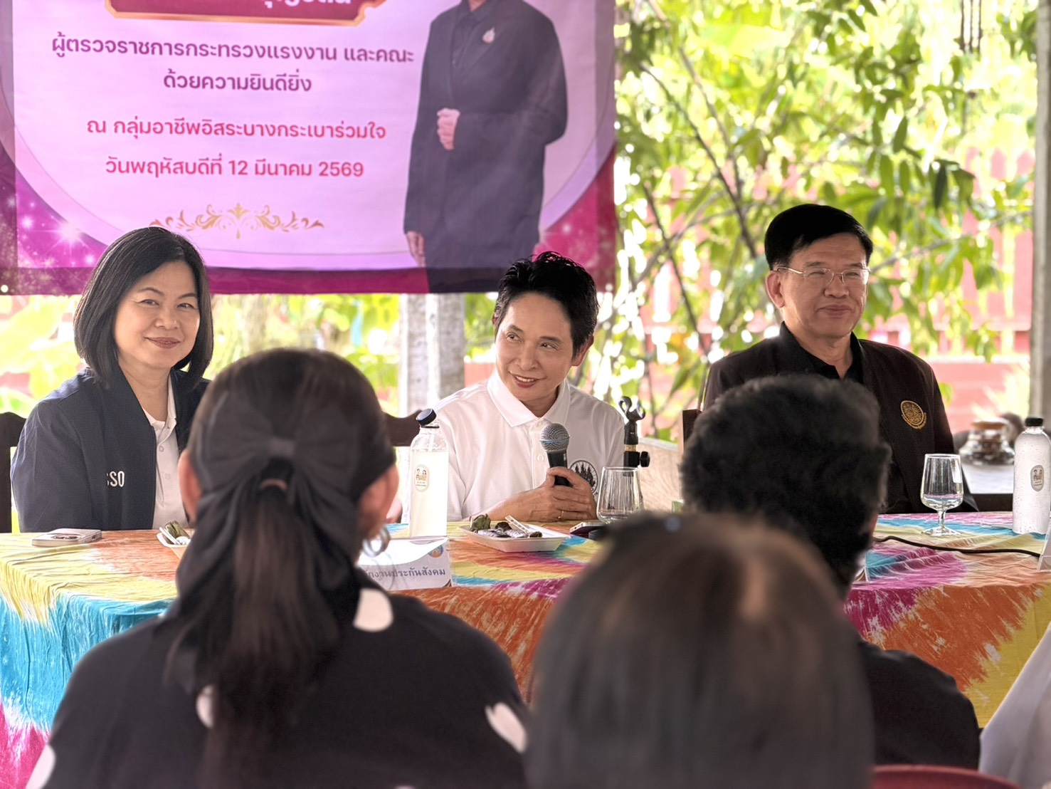 วันที่ 12 มีนาคม 2568 เวลา 13.30 น. นางสาวจีระภา บุญรัตน์ ผู้ตรวจราชการกระทรวงแรงงาน พร้อมคณะ ได้เดินทางลงพื้นที่หน่วยบริการชุมชนแรงงานนอกระบบบางกระเบา เพื่อตรวจเยี่ยมและให้กำลังใจ “กลุ่มอาชีพอิสระบางกระเบาร่วมใจ” โดยมี นายขจรเดช นพคุณชัยกิจ นายกเทศมนตรีตำบลนครชัยศรี ให้การตอนรับ ซึ่งกลุ่มดังกล่าวเป็นกลุ่มแรงงานนอกระบบที่มีความเข้มแข็งในการสร้างรายได้เสริมผ่านงานฝีมือ โดย ผู้ตรวจราชการฯ ได้เยี่ยมชมกระบวนการผลิตและผลิตภัณฑ์เด่นของกลุ่ม ได้แก่ การจัดทำกระเป๋าผ้าทำมือ หมอนอิงมัดย้อม พวงกุญแจผ้าดิบมือ ณ ตำบลบางกระเบา อำเภอนครชัยศรี จังหวัดนครปฐม