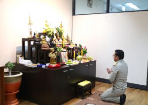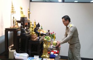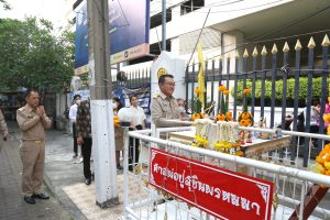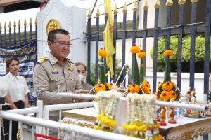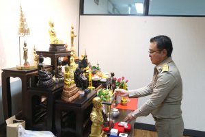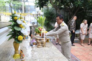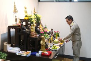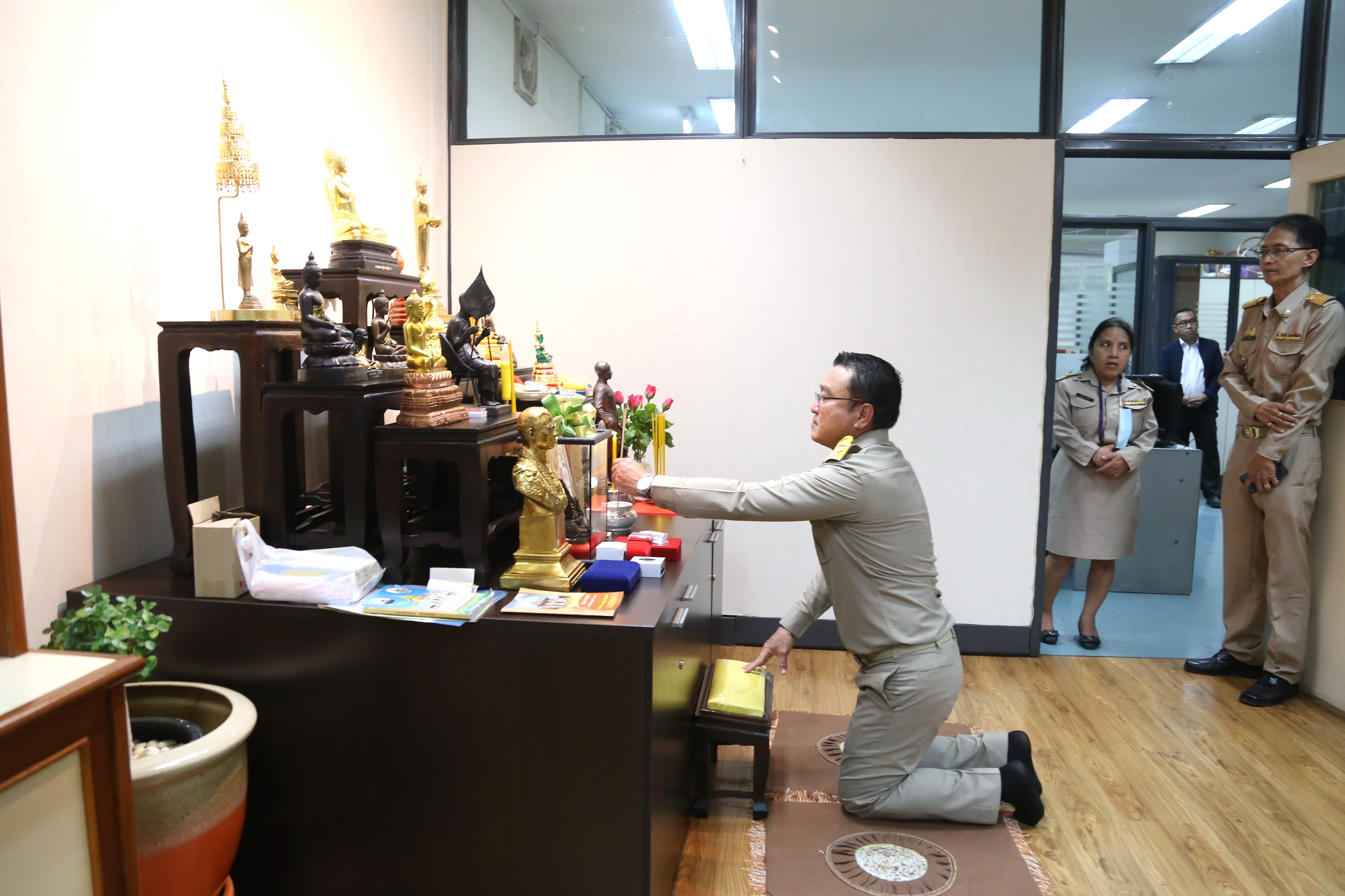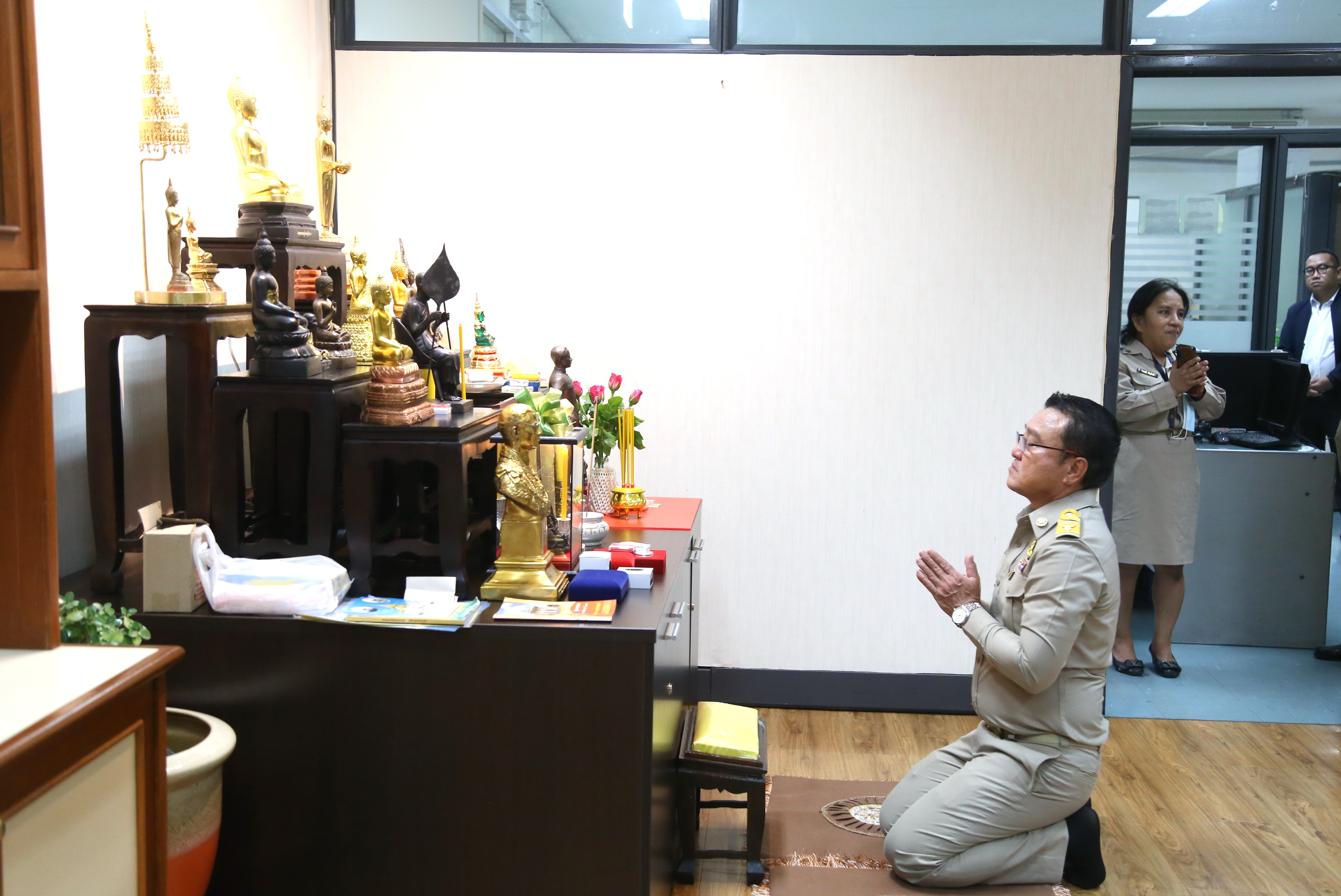 วันที่ 26 มีนาคม 2567 เวลา 07.30 น. นายสันติ นันตสุวรรณ ผู้ตรวจราชการกระทรวงแรงงาน สักการะสิ่งศักดิ์สิทธิ์ประจำกระทรวงแรงงาน ประกอบด้วย พระพุทธสุทธิธรรมบพิตร พระพุทธชินราช ศาลพ่อปู่ชัยมงคล ศาลท้าวมหาพรหมเทวฤทธิ์ ศาลพ่อปู่ชินพรหมมา และสักการะพระพุทธรูปในห้องทำงานผู้ตรวจราชการกระทรวงแรงงาน ชั้น 8 อาคารกระทรวงแรงงาน เนื่องในโอกาสเข้ารับตำแหน่งผู้ตรวจราชการกระทรวงแรงงาน โดยมี ผู้บริหาร ข้าราชการ และเจ้าหน้าที่กระทรวงแรงงาน ร่วมพิธี ณ บริเวณกระทรวงแรงงาน