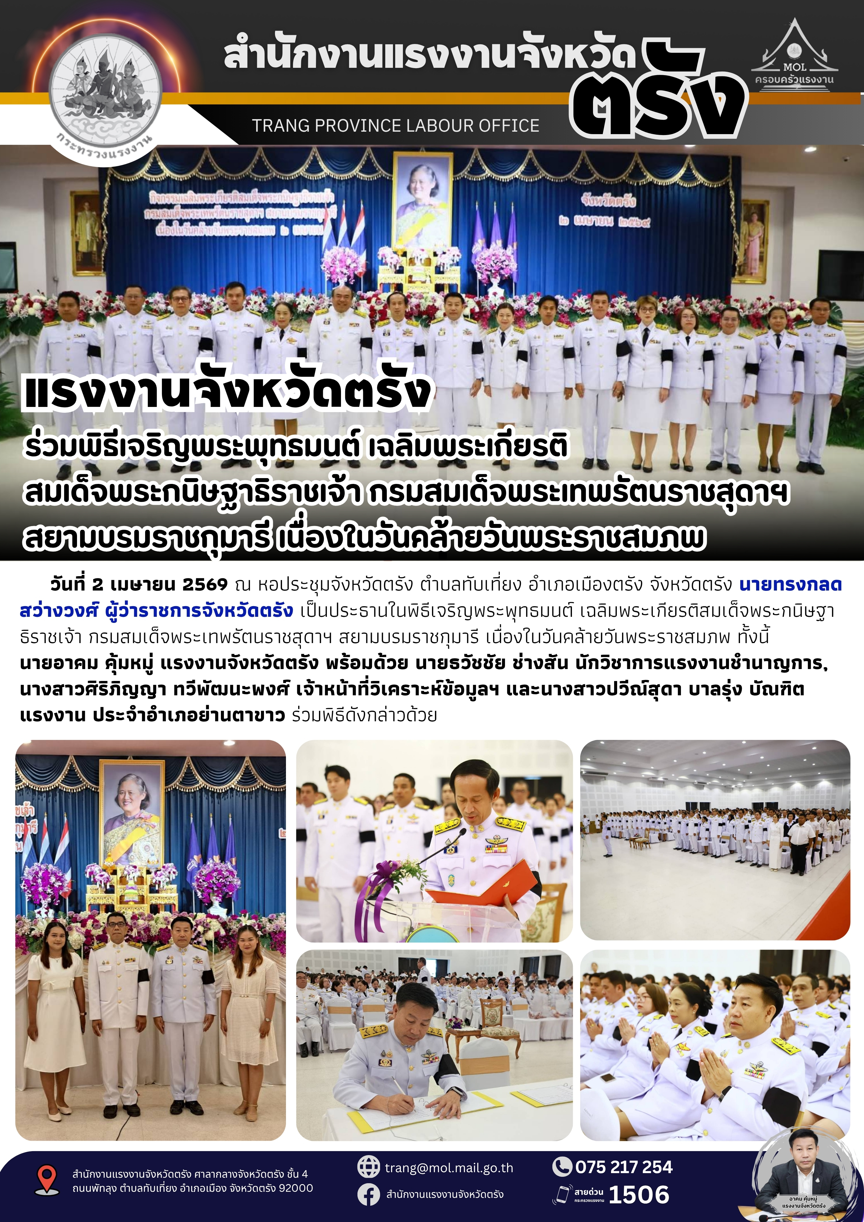 วันพุธที่ 12 กุมภาพันธ์ 2563 เวลา 9.30 น. นายจิรายุ นันท์ธราธร ผต.นร. เขต 8 พร้อมคณะ ซึ่งประกอบด้วย นายภิญโญ ประกอบผล ผต.มท. นายกมล หมั่นธรรม ผต.คค. และ นางสาวอัญชนา หิรัญพฤกษ์ ผต.กกจ. เดินทางมาจังหวัดระยอง เพื่อติดตาม เรื่อง “การจัดการประมงอย่างยั่งยืน” โดย นางสาวกรจิรัฏฐ์ พงจันทร์ศธร แรงงานจังหวัดระยอง, นางสาวสายทิพย์ แสงไฟ สวัสดิการและคุ้มครองแรงงานจังหวัดระยอง และนายวสันต์ ปาลาศ จัดหางานจังหวัดสระแก้ว รก.จัดหางานจังหวัดระยอง เข้าร่วมการประชุมและรายงานสถานการณ์และสภาพปัญหาด้านแรงงานประมง ผลการดำเนินการเพื่อป้องกันหรือแก้ไขปัญหาแรงงาน การสนับสนุนการดำเนินงานศูนย์แจ้งเรือเข้า-ออก (PIPO) การบูรณาการความร่วมมือกับภาคส่วนต่างๆ ตลอดจนปัญหาอุปสรรค และข้อเสนอแนะในการจัดการประมงให้เกิดความยั่งยืน ณ ห้องศรีสมุทรโภคไชย ชั้น 4 ศาลากลางจังหวัดระยอง และช่วงบ่ายเวลา 13.30 น. ลงพื้นที่ตรวจเยี่ยมการปฏิบัติงานของเจ้าหน้าที่ศูนย์ควบคุมการแจ้งเรือเข้า-ออก จังหวัดระยอง ณ แพป้าอ้อ ต.ท่าประดู่ อ.เมือง จ.ระยอง