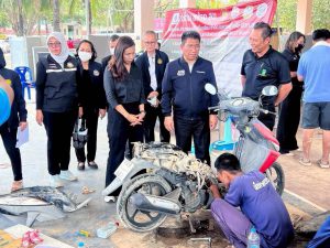 ผู้ตรวจราชการฯ ลงพื้นที่จ.สงขลา ตรวจติดตามการให้ความช่วยเหลือผู้ได้รับผลกระทบจากเหตุอุทกภัย วันที่ 5 ธันวาคม 2568 เวลา 13.30 น. พันตำรวจโท วรรณพงษ์ คชรักษ์ ปลัดกระทรวงแรงงาน มอบหมายให้ ว่าที่ร้อยตรี สมศักดิ์ พรหมดำ ผู้ตรวจราชการกระทรวงแรงงาน ลงพื้นที่จังหวัดสงขลา เพื่อตรวจติดตามการให้ความช่วยเหลือผู้ได้รับผลกระทบจากเหตุอุทกภัยตามมาตรการเร่งด่วนฟื้นฟูผู้ประสบภัยน้ำท่วมของกระทรวงแรงงาน ร่วมกับหัวหน้าส่วนราชการสังกัดกระทรวงแรงงานจังหวัดสงขลา พร้อมทั้ง ตรวจติดตามการดำเนินงาน และให้กำลังใจแก่เจ้าหน้าที่โครงการ “ซ่อม สร้าง สุข” จุดบริการศูนย์ซ่อมรถจักรยานยนต์ เครื่องยนต์เล็กฯ เครื่องใช้ไฟฟ้า ในพื้นที่ประสบภัย ณ โรงเรียนหาดใหญ่วิทยาลัยสมบูรณ์กุลกันยา อำเภอหาดใหญ่ จังหวัดสงขลา