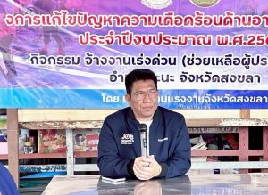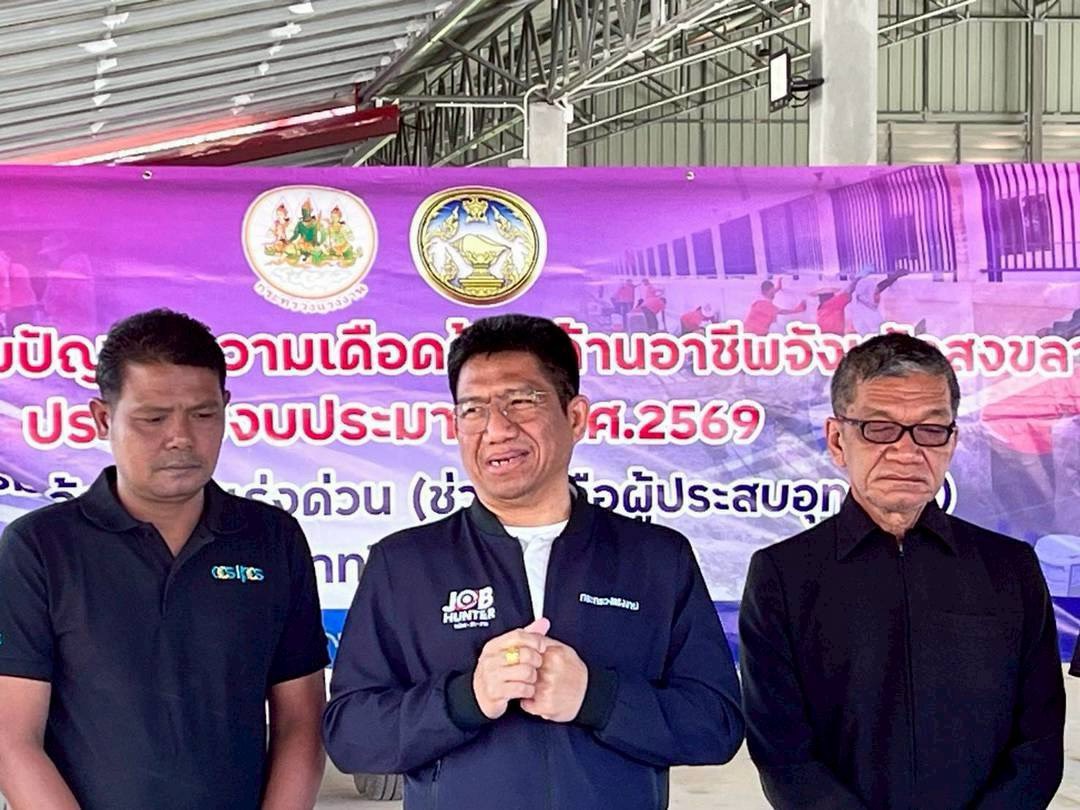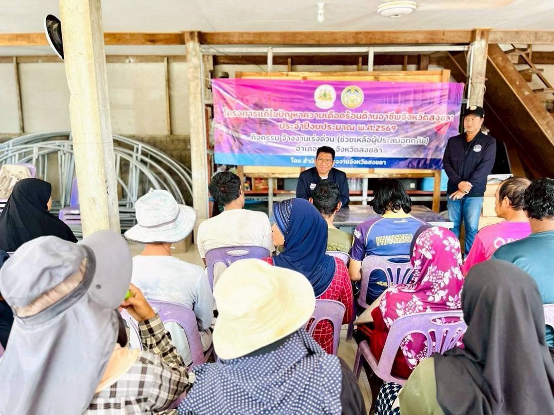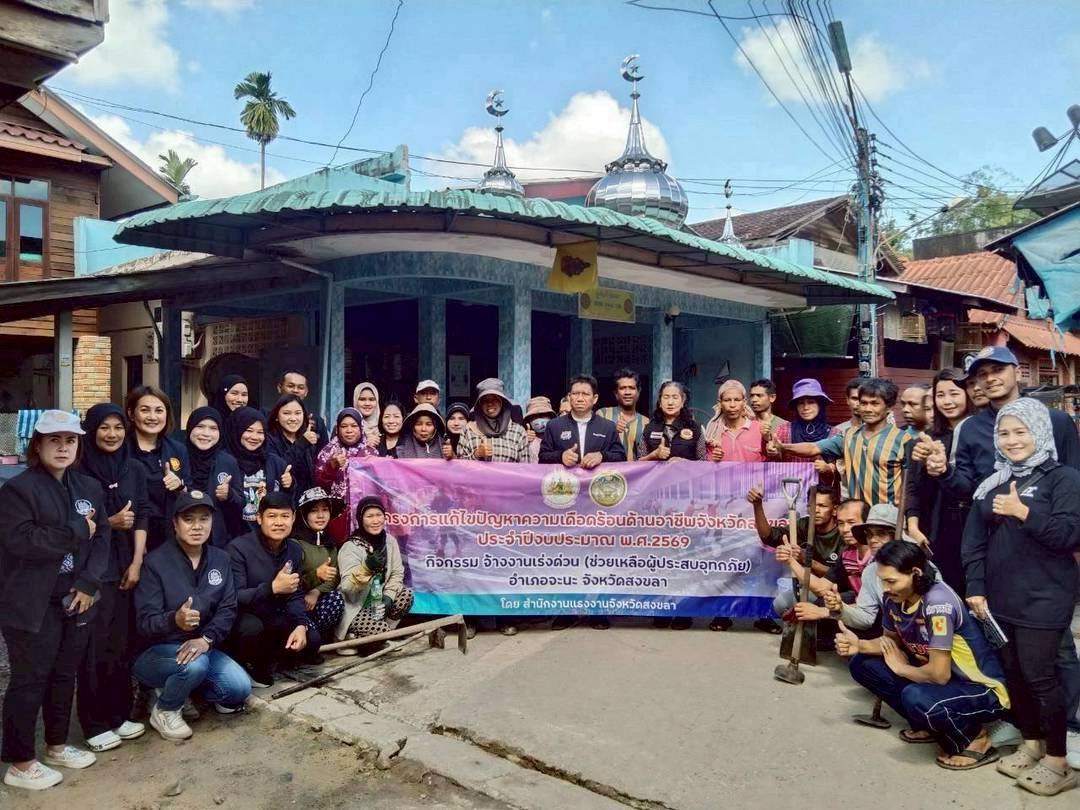 วันที่ 7 ธันวาคม 2568 พันตำรวจโท วรรณพงษ์ คชรักษ์ ปลัดกระทรวงแรงงาน มอบหมายให้ ว่าที่ร้อยตรี สมศักดิ์ พรหมดำ ผู้ตรวจราชการกระทรวงแรงงาน ลงพื้นที่จังหวัดสงขลา ติดตามการให้ความช่วยเหลือผู้ได้รับผลกระทบจากอุทกภัยตามมาตรการเร่งด่วนฟื้นฟูผู้ประสบภัยน้ำท่วมของกระทรวงแรงงาน ในโครงการแก้ไขปัญหาความเดือดร้อนด้านอาชีพจังหวัดสงขลา กิจกรรมจ้างงานเร่งด่วน ทำความสะอาดสำนักสงฆ์คลองทรายทอง ณ สำนักสงฆ์คลองทรายทอง อำเภอนาทวี จังหวัดสงขลา และขุดลอกคูระบายน้ำในหมู่บ้าน (คูไส้ไก่) ณ ตำบลนาหว้า อำเภอจะนะ จังหวัดสงขลา ในการนี้ ผู้ตรวจราชการกระทรวงแรงงาน ยังได้ประชาสัมพันธ์มาตรการให้ความช่วยเหลือผู้ประสบอุทกภัยของกระทรวงแรงงานแก่ประชาชนในพื้นที่อีกด้วย