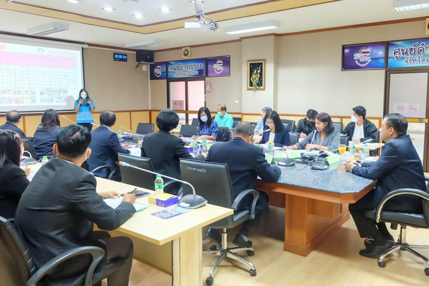 เมื่อวันที่ 23 กุมภาพันธ์ 2566 นายสมาสภ์ ปัทมะสุคนธ์ ผู้ตรวจราชการกระทรวงแรงงาน เป็นประธานการประชุมหัวหน้าส่วนราชการสังกัดกระทรวงแรงงานของผู้ตรวจราชการกระทรวงแรงงาน ตามโครงการตรวจติดตามการดำเนินการตรวจคัดกรองเบื้องต้นการบังคับใช้แรงงาน หรือบริการและการค้ามนุษย์ด้านแรงงานต่างด้าว ตามมาตรฐานการปฏิบัติงานการตรวจคัดกรอง (SOP) ให้เป็นไปตามกลไกการส่งต่อระดับชาติ เขตตรวจราชการที่ 8 จังหวัดฉะเชิงเทรา ณ ห้องประชุมสุนทรพิพิธ ชั้น 3 ศาลากลางจังหวัดฉะเชิงเทรา และผู้ตรวจราชการกระทรวงแรงงาน นำคณะหัวหน้าส่วนราชการสังกัดกระทรวงแรงงานจังหวัดฉะเชิงเทรา ลงพื้นที่ตรวจเยี่ยม บริษัท ซีพีเอฟ (ประเทศไทย) จำกัด (มหาชน) ที่มีลูกจ้างเป็นแรงงานต่างด้าวจำนวนกว่า 700 คน เพื่อรับฟังปัญหา และให้คำแนะนำแก่ผู้ประกอบการเกี่ยวกับการใช้แบบคัดกรอง รบ.1 ณ อำเภอเมืองฉะเชิงเทรา จังหวัดฉะเชิงเทรา