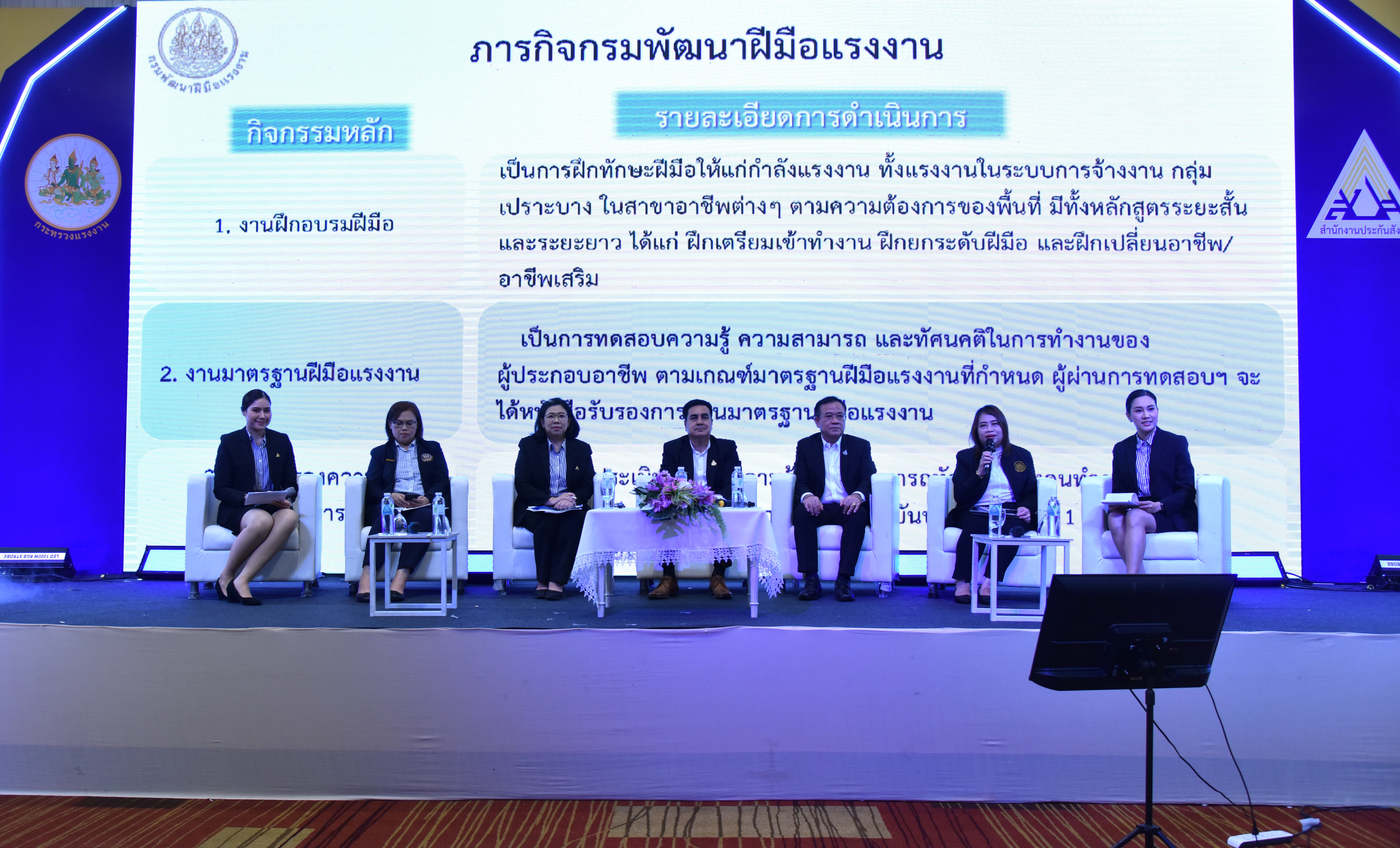 วันที่ 7 ธันวาคม 2566 เวลา 13.00 น. นายไพโรจน์ โชติกเสถียร ปลัดกระทรวงแรงงาน มอบหมายให้ นายนันทชัย ปัญญาสุรฤทธิ์ ผู้ตรวจราชการกระทรวงแรงงาน ร่วมเป็นเกียรติในพิธีเปิดงานประชุมวิชาการประกันสังคมภูมิภาค (ภาคใต้) และเข้าร่วมการเสวนา เรื่อง “กระทรวงแรงงาน ยุคใหม่ ทักษะดี มีงานทำ ประกันสังคมเด่น” โดยมี นายพิพัฒน์ รัชกิจประการ รัฐมนตรีว่าการกระทรวงแรงงาน เป็นประธานเปิดงาน ณ โรงแรมวังใต้ อำเภอเมือง จังหวัดสุราษฎร์ธานี
