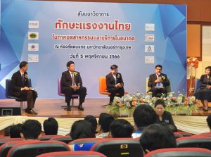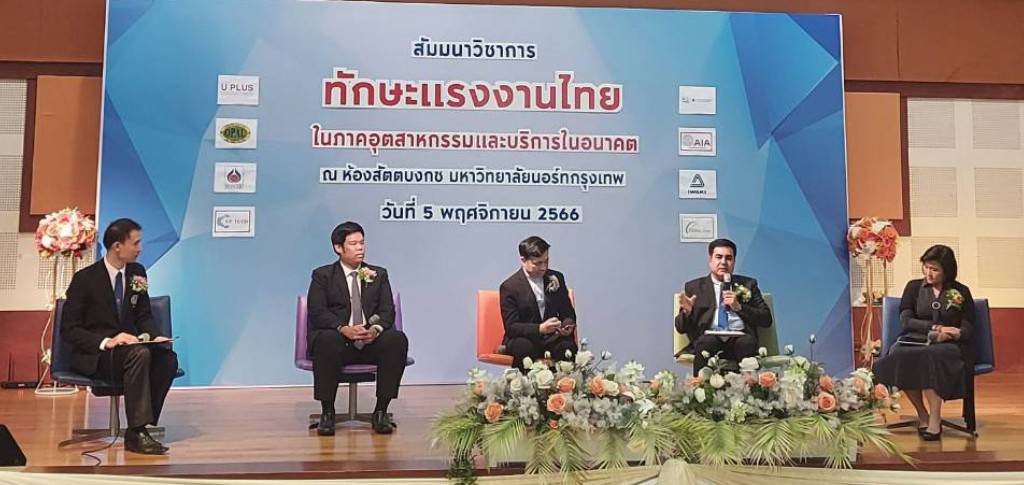 วันที่ 5 พฤศจิกายน 2566 เวลา 14.00 น. นายนันทชัย ปัญญาสุรฤทธิ์ ผู้ตรวจราชการกระทรวงแรงงาน ร่วมเป็นวิทยากรเสวนาวิชาการเรื่อง “ทักษะที่จำเป็นในภาคอุตสาหกรรมและบริการยุคใหม่” ในงานสัมมนาวิชาการทักษะแรงงานไทยในภาคอุตสาหกรรมและบริการในอนาคต ณ ห้องสัตตบงกช อาคารเรียน 1 ชั้น 3 มหาวิทยาลัยนอร์ทกรุงเทพ วิทยาเขตรังสิต อำเภอธัญบุรี จังหวัดปทุมธานี สำหรับการสัมมนาในครั้งนี้ จัดขึ้นโดย นักศึกษาหลักสูตรปริญญาเอก สาขาวิชาการจัดการ รุ่น 12 คณะบริหารธุรกิจ มหาวิทยาลัยนอร์ทกรุงเทพ