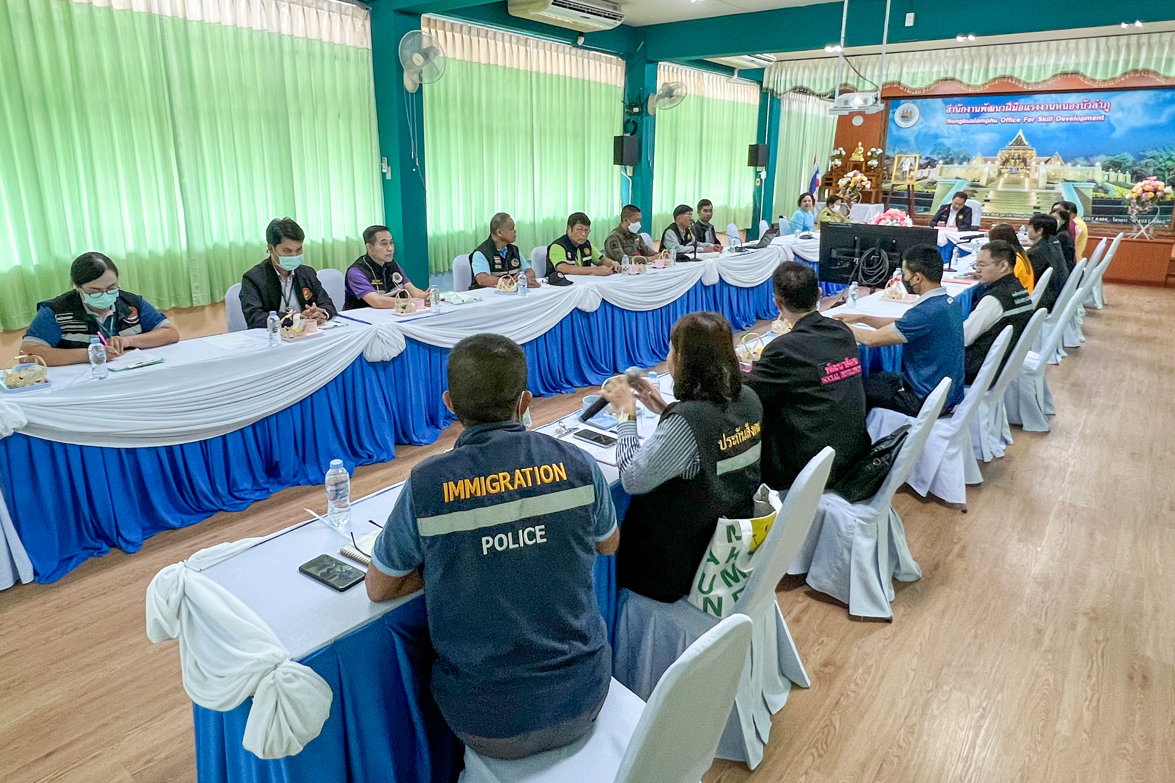 วันที่ 6 กันยายน 2566 นายสมาสภ์ ปัทมะสุคนธ์ ผู้ตรวจราชการกระทรวงแรงงาน เป็นประธานการประชุมคณะทำงานตรวจคัดกรองเพื่อแสวงหาข้อบ่งชี้เบื้องต้น เพื่อแสวงหาข้อบ่งชี้สำหรับบุคคลที่มีเหตุอันควรสงสัยได้ว่าอาจเป็นผู้เสียหายจากการแสวงหาผลประโยชน์ด้านแรงงาน แรงงานบังคับ หรือการค้ามนุษย์ด้านแรงงานจังหวัดหนองบัวลำภู และประชุมหัวหน้าส่วนราชการสังกัดกระทรวงแรงงานจังหวัดหนองบัวลำภู ในการตรวจติดตามประเมินผลการปฏิบัติงานตามประเด็นแผนการตรวจราชการของผู้ตรวจราชการกระทรวงแรงงาน ประจำปีงบประมาณ พ.ศ. 2566 รอบที่ 3 (Monitoring/Evaluation) เขตตรวจราชการที่ 10 จังหวัดหนองบัวลำภู และตรวจติดตามประเมินผลการดำเนินการตามแผนการตรวจราชการสำนักงานปลัดกระทรวงแรงงาน ณ ห้องประชุมสำนักงานพัฒนาฝีมือแรงงานหนองบัวลำภู