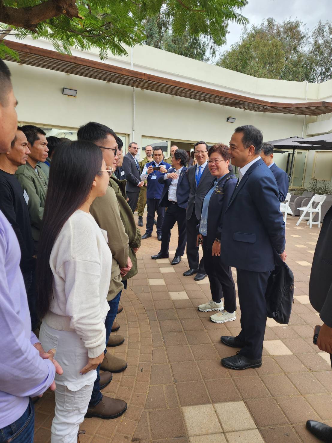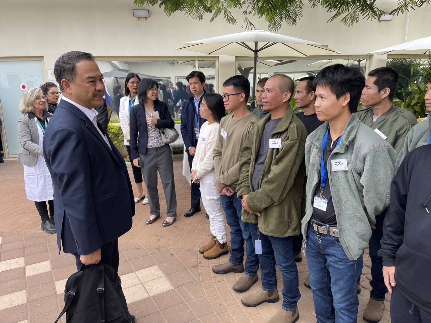 The Ministry of Labour’s Inspector-General, Mr. Samat Pattamasukon, met, talked to, and provided information to Thai workers about benefits for those who were held hostage. Each person will receive the first financial aid amount of 10,000 Shekels in the form of a cash card, which can be used worldwide. In addition, during the first six months, they will receive 6,900 Shekels monthly. Workers who experience physical or mental issues are asked to see a doctor and obtain a medical certificate. They can provide this to the Israeli counterpart as a consideration in the monthly allowance. After the first 6 months, each person will receive a different amount of money depending on the evaluation.