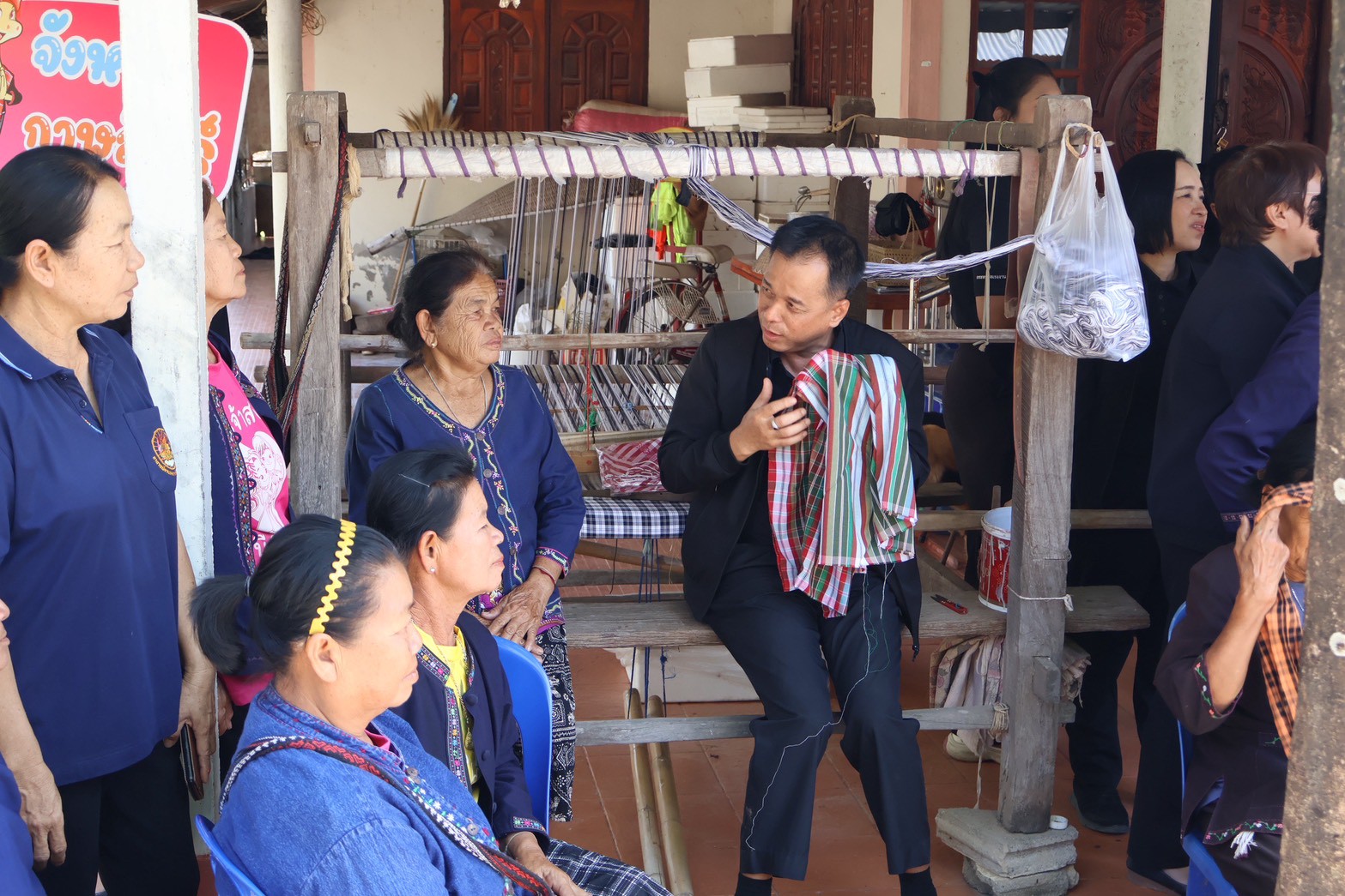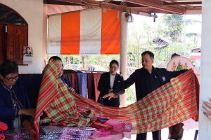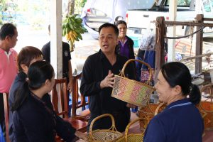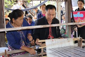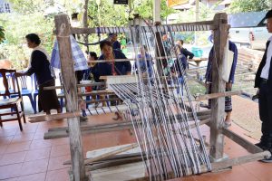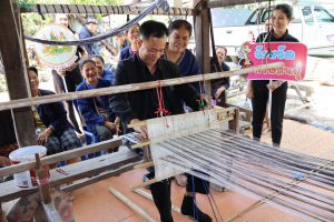 จากนั้น เวลา 14.30 น. ผู้ตรวจราชการกระทรวงแรงงาน และคณะ ลงพื้นที่ตรวจเยี่ยมโครงการบูรณาการการทำงานของหน่วยงานในสังกัดกระทรวงแรงงาน การยกระดับคุณภาพชีวิตแรงงานนนอกระบบ เพื่อกระตุ้นเศรษฐกิจชุมชน ผ่านกลไกบัณฑิตแรงงาน เพื่อติดตามความคืบหน้าโครงการบูรณาการการทำงานของหน่วยงานในสังกัดกระทรวงแรงงาน ในการยกระดับคุณภาพชีวิตแรงงานนอกระบบ โดยมี คุณพิมพ์เงิน เหมวิจิตร อาสาสมัครแรงงานตำบลดงลิง ให้การต้อนรับ ณ กลุ่มทอผ้าบ้านเมย หมู่ที่ 11 ตำบลดงลิง อำเภอกมลาไสย จังหวัดกาฬสินธุ์