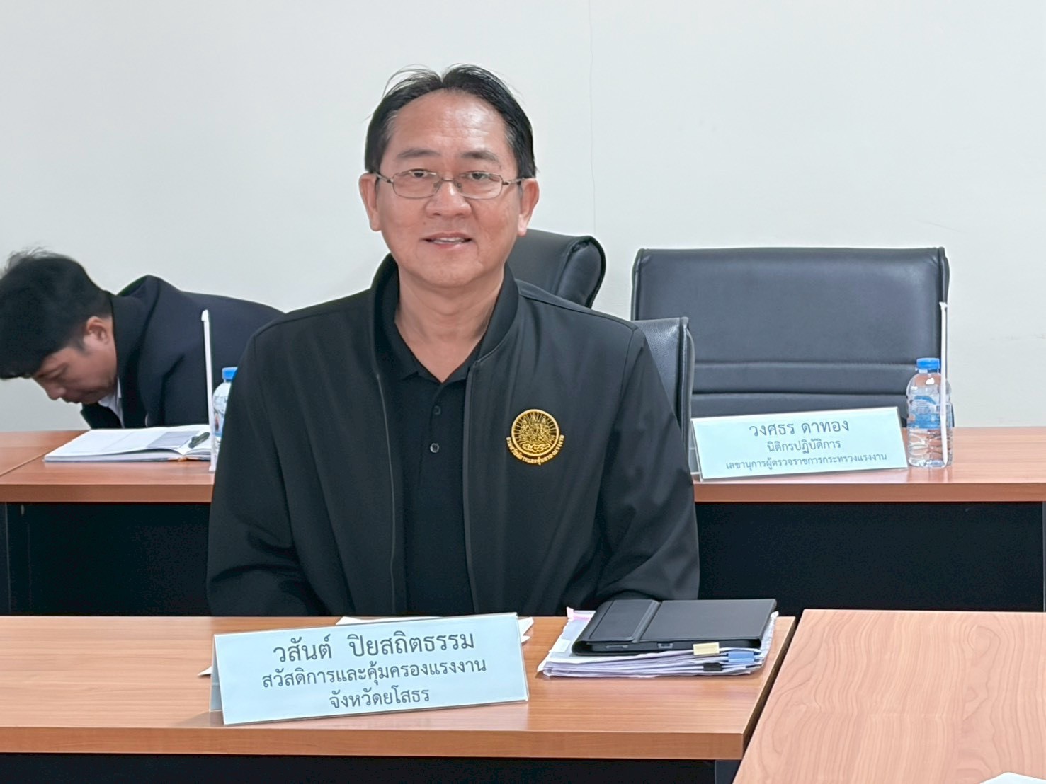 วันที่ 25 มีนาคม 2569 เวลา 09.00 น. นายสิบหมื่นชัย โพธิสินธุ์ ผู้ตรวจราชการกระทรวงแรงงาน เป็นประธานการประชุมหัวหน้าส่วนราชการสังกัดกระทรวงแรงงานจังหวัดยโสธร เพื่อตรวจติดตามความก้าวหน้าของผลการปฏิบัติงานตามประเด็นแผนการตรวจราชการของผู้ตรวจราชการกระทรวงแรงงาน ประจำปีงบประมาณ พ.ศ. 2569 รอบที่ 2 (Progress Review) เพื่อรับฟังความก้าวหน้าและปัญหาอุปสรรคในการขับเคลื่อนภารกิจด้านแรงงานในระดับพื้นที่ ณ ห้องประชุมโรงงานตัดแต่งและแปรรูปสุกรยโสธร บมจ.ซีพีเอฟ ประเทศไทย ต.ทรายมูล อ.ทรายมูล จ.ยโสธร