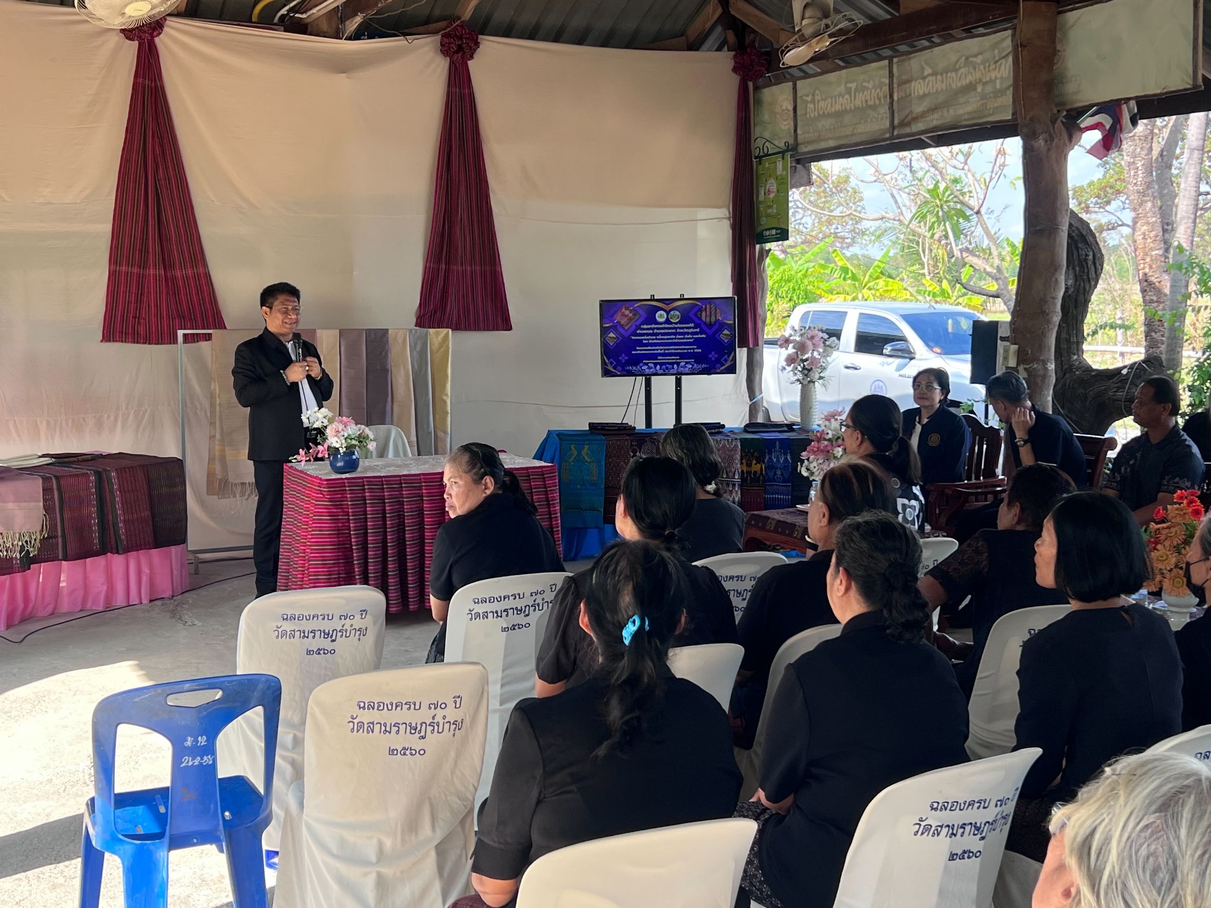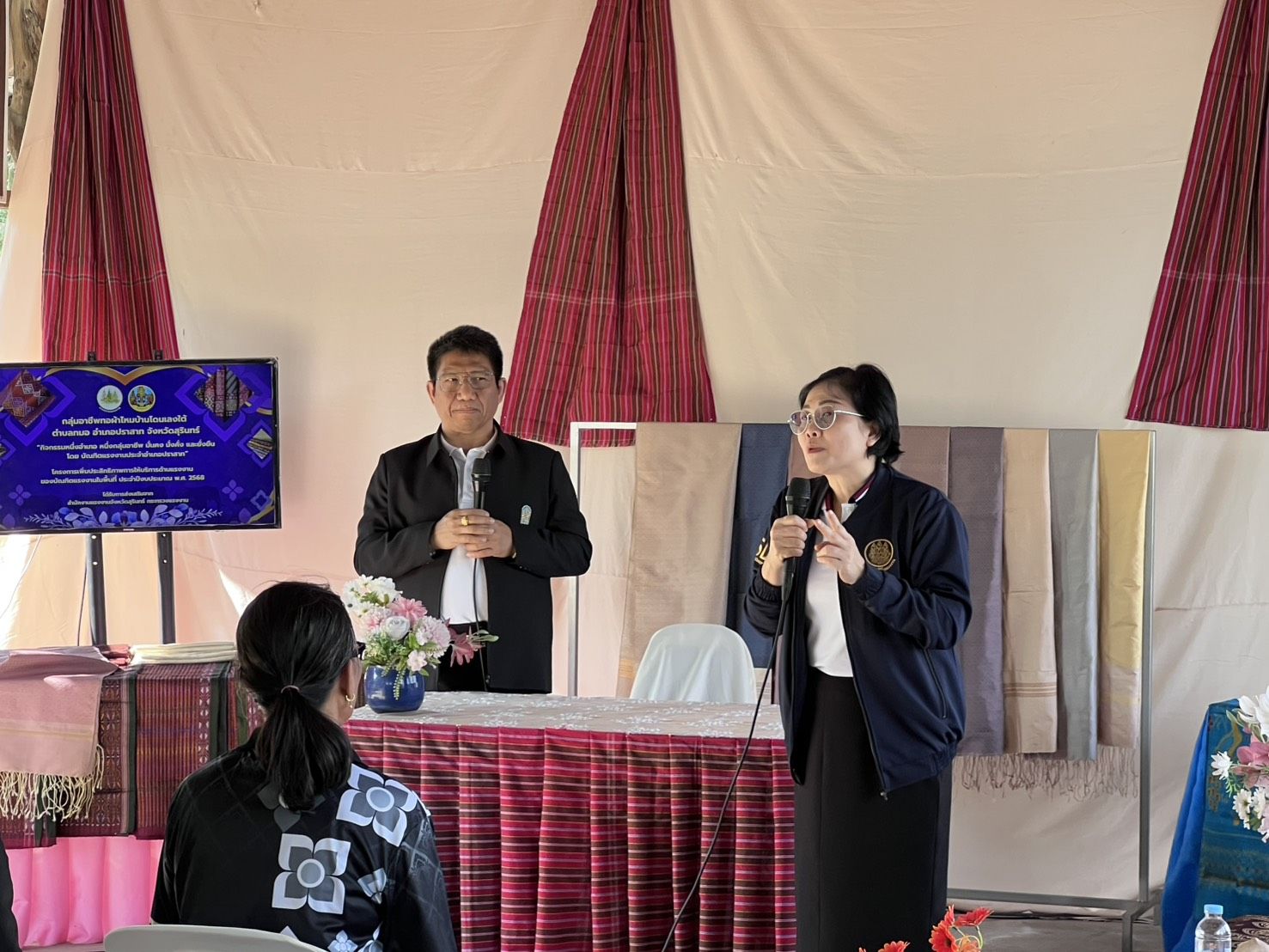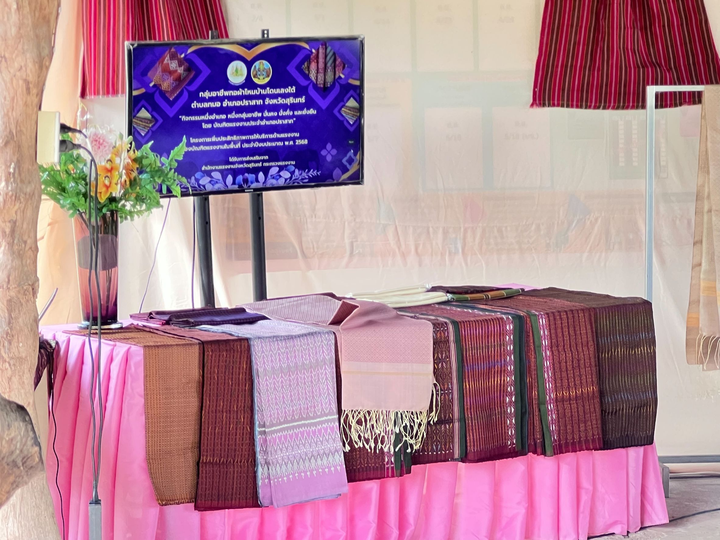 วันที่ 11 มีนาคม 2569 เวลา 13.00 น. ว่าที่ร้อยตรี สมศักดิ์ พรหมดำ ผู้ตรวจราชการกระทรวงแรงงาน และคณะ ลงพื้นที่ตรวจเยี่ยมกลุ่มทอผ้าไหม ซึ่งมีวัฒนธรรมการทอผ้าไหมมานานและได้สืบทอดเป็นมรดกทางวัฒนธรรมมานานจนเป็นเอกลักษณ์ของตนเองที่น่าสนใจ โดยการการทอผ้าของจังหวัดสุรินทร์นิยมนำเส้นไหมขั้นหนึ่งหรือไหมน้อย มาใช้ในการทอผ้า ถือเป็นลายเอกลักษณ์ของลายผ้าไหมจังหวัดสุรินทร์ โดยมี หัวหน้าส่วนราชการสังกัดกระทรวงแรงงานจังหวัดสุรินทร์ เข้าร่วมด้วย ณ กลุ่มวิสาหกิจชุมชนบ้านโดนเลงใต้ ต.ทมอ อ.ปราสาท จ.สุรินทร์