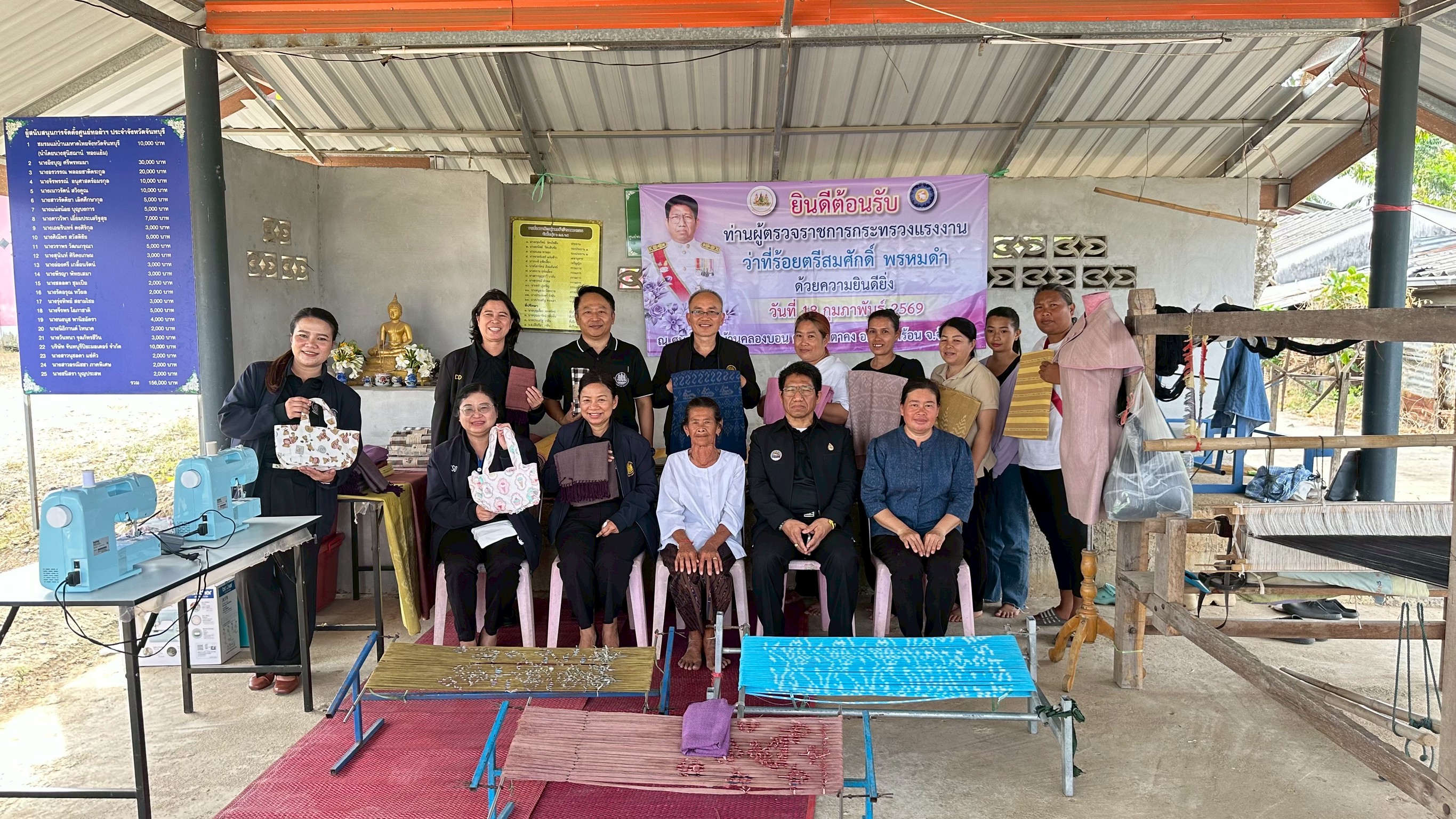 วันที่ 18 กุมภาพันธ์ 2569 เวลา 14.30 น. ว่าที่ร้อยตรี สมศักดิ์ พรหมดำ ผู้ตรวจราชการกระทรวงแรงงาน และคณะ ลงพื้นที่ตรวจเยี่ยมกลุ่มอาชีพ กลุ่มผ้าทอมือบ้านคลองบอน โดยมี หัวหน้าส่วนราชการสังกัดกระทรวงแรงงานจังหวัดจันทบุรี เข้าร่วมด้วย ณ ตำบลหนองตาคง อำเภอโป่งน้ำร้อน จังหวัดจันทบุรี