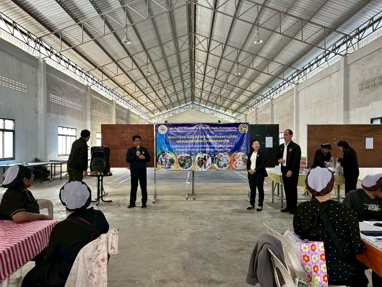 วันที่ 11 กุมภาพันธ์ 2569 เวลา 13.00 น. ว่าที่ร้อยตรี สมศักดิ์ พรหมดำ ผู้ตรวจราชการกระทรวงแรงงาน ลงพื้นที่ตรวจเยี่ยมการฝึกอบรมหลักสูตรการทำขนมเบเกอรี่มืออาชีพ หลักสูตรระยะ 30 ชั่วโมง ภายใต้โครงการเพิ่มทักษะแรงงานอิสระและกลุ่มเป้าหมายเฉพาะ เพื่อเพิ่มโอกาสในการประกอบอาชีพและพัฒนาทักษะแรงงานนอกระบบให้สอดคล้องกับความสามารถเฉพาะบุคคล ซึ่งเป็นโครงการที่มุ่งเน้นการสร้างโอกาสทางอาชีพให้กับแรงงานอิสระในพื้นที่ ณ อาคารอเนกประสงค์สมเด็จพระเจ้าทรงธรรม แม่ย่าซอม เพื่อการกีฬา หมู่ที่ 5 ตำบลคลองหาด อำเภอคลองหาด จังหวัดสระแก้ว จากนั้นเวลา 15.00 น. ผู้ตรวจราชการกระทรวงแรงงาน และคณะ ลงพื้นที่ตรวจเยี่ยมการดำเนินงานติดตามกระบวนการบริหารจัดการแรงงานต่างด้าวในพื้นที่ให้เป็นไปตามมาตรฐานที่กำหนด ณ ศูนย์แรกรับเข้าทำงานและสิ้นสุดการจ้างจังหวัดสระแก้ว อำเภออรัญประเทศ จังหวัดสระแก้ว