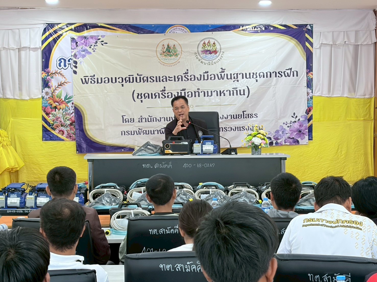 วันที่ 25 มีนาคม 2569 เวลา 14.00 น. นายสิบหมื่นชัย โพธิสินธุ์ ผู้ตรวจราชการกระทรวงแรงงาน เป็นธานในพิธีมอบเครื่องมือชุดพื้นฐานการฝึกให้แก่ผู้สำเร็จการฝึกอบรมโครงการเพิ่มทักษะแรงงานอิสระและกลุ่มเป้าหมายเฉพาะเพื่อเพิ่มโอกาสในการประกอบอาชีพ กิจกรรมพัฒนาทักษะแรงงานนอกระบบให้สอดคล้องกับความสามารถเฉพาะบุคคลเพื่อการประกอบอาชีพ ประจำปีงประมาณ พ.ศ. 2569 เพื่อยกระดับคุณภาพชีวิตแรงงานนอกระบบ กระตุ้นเศรษฐกิจชุมชนผ่านกลไกบัณฑิตแรงงาน โดยมี นายเขียม พุทธมาลักษณ์ รองนายกเทศมนตรีตำบลสามัคคี พร้อมด้วย หัวหน้าส่วนราชการสังกัดกระทรวงแรงงานจังหวัดยโสธร เข้าร่วม ณ เทศบาลตำบลสามัคคี อำเภอเลิงนกทา จังหวัดยโสธร