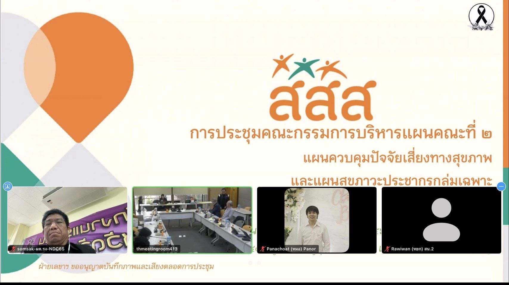 วันที่ 18 กุมภาพันธ์ 2569 เวลา 09.30 น. ว่าที่ร้อยตรี สมศักดิ์ พรหมดำ ผู้ตรวจราชการกระทรวงแรงงาน เข้าร่วมการประชุมคณะกรรมการบริหารแผนคณะที่ 2 ครั้งที่ 2/2569 แผนควบคุมปัจจัยเสี่ยงทางสุขภาพ และแผนสุขภาวะประชากรกลุ่มเฉพาะ ผ่านระบบสื่ออิเล็กทรอนิกส์ (Zoom Cloud Meeting) โดยมี นายพรเทพ ศิริวนารังสรรค์ เป็นประธานคณะอนุกรรมการ ผู้แทนหน่วยงานที่เกี่ยวข้องเข้าร่วมการประชุม ณ ห้องประชุม 302 ชั้น 3 สำนักงานกองทุนสนับสนุนการสร้างเสริมสุขภาพ