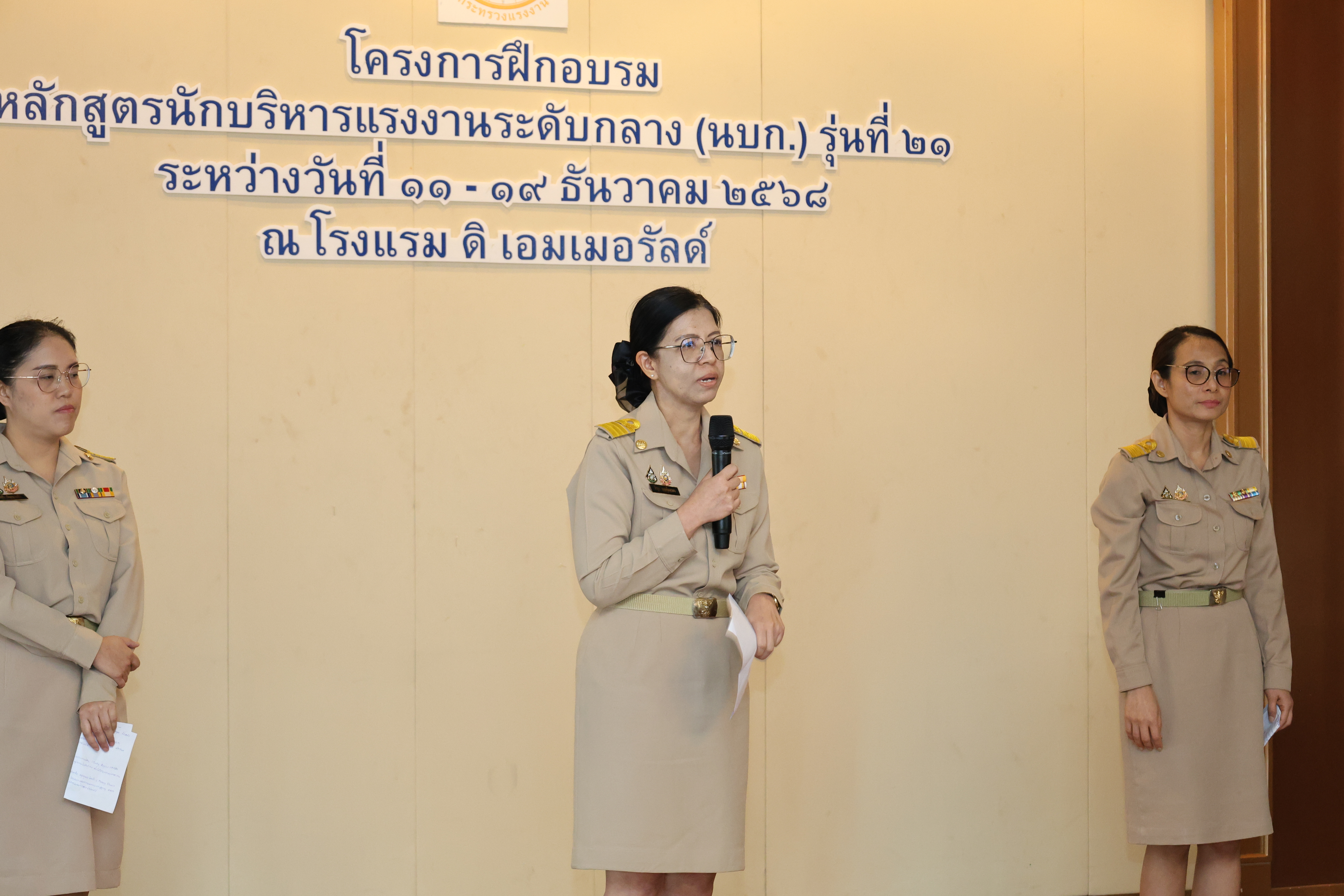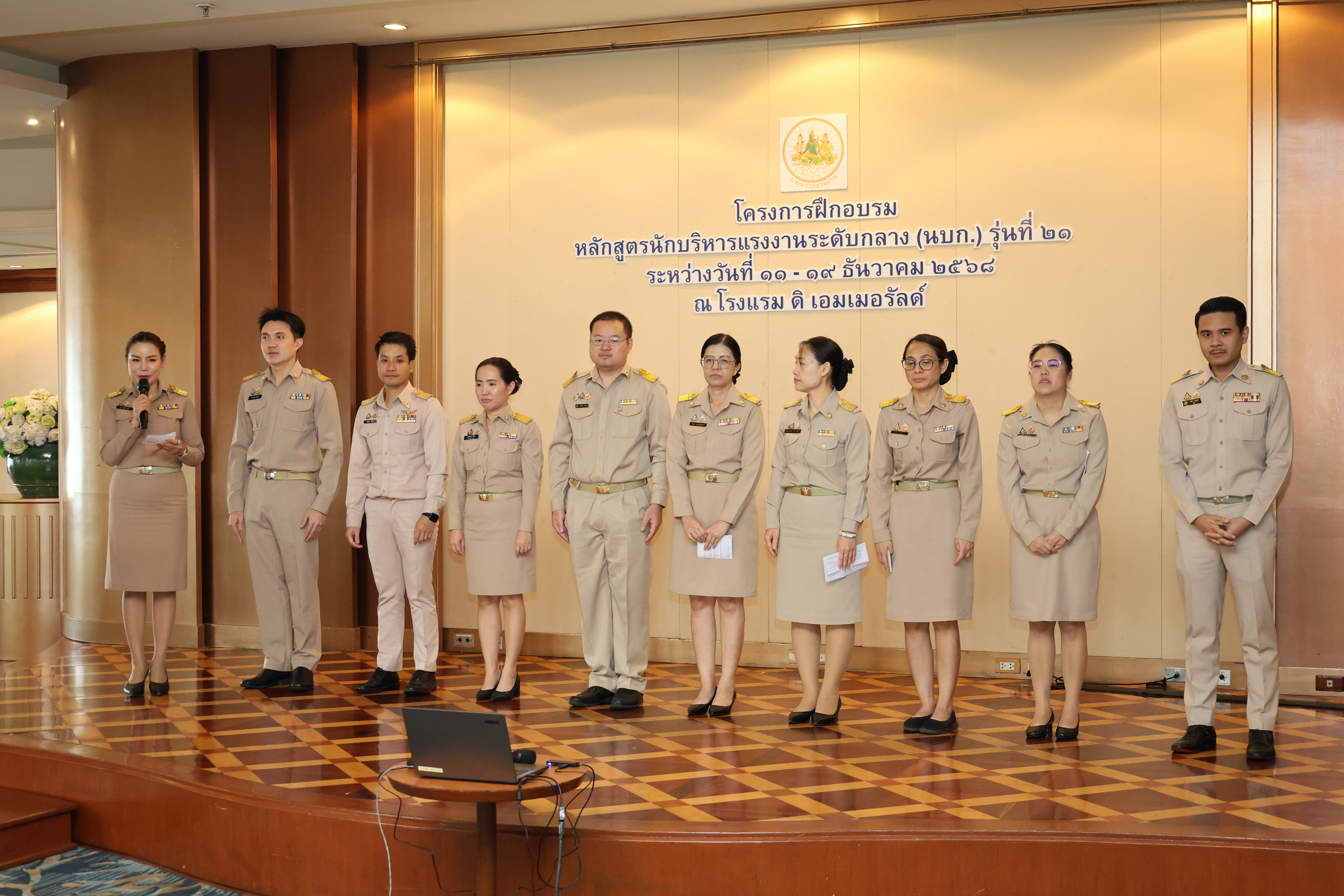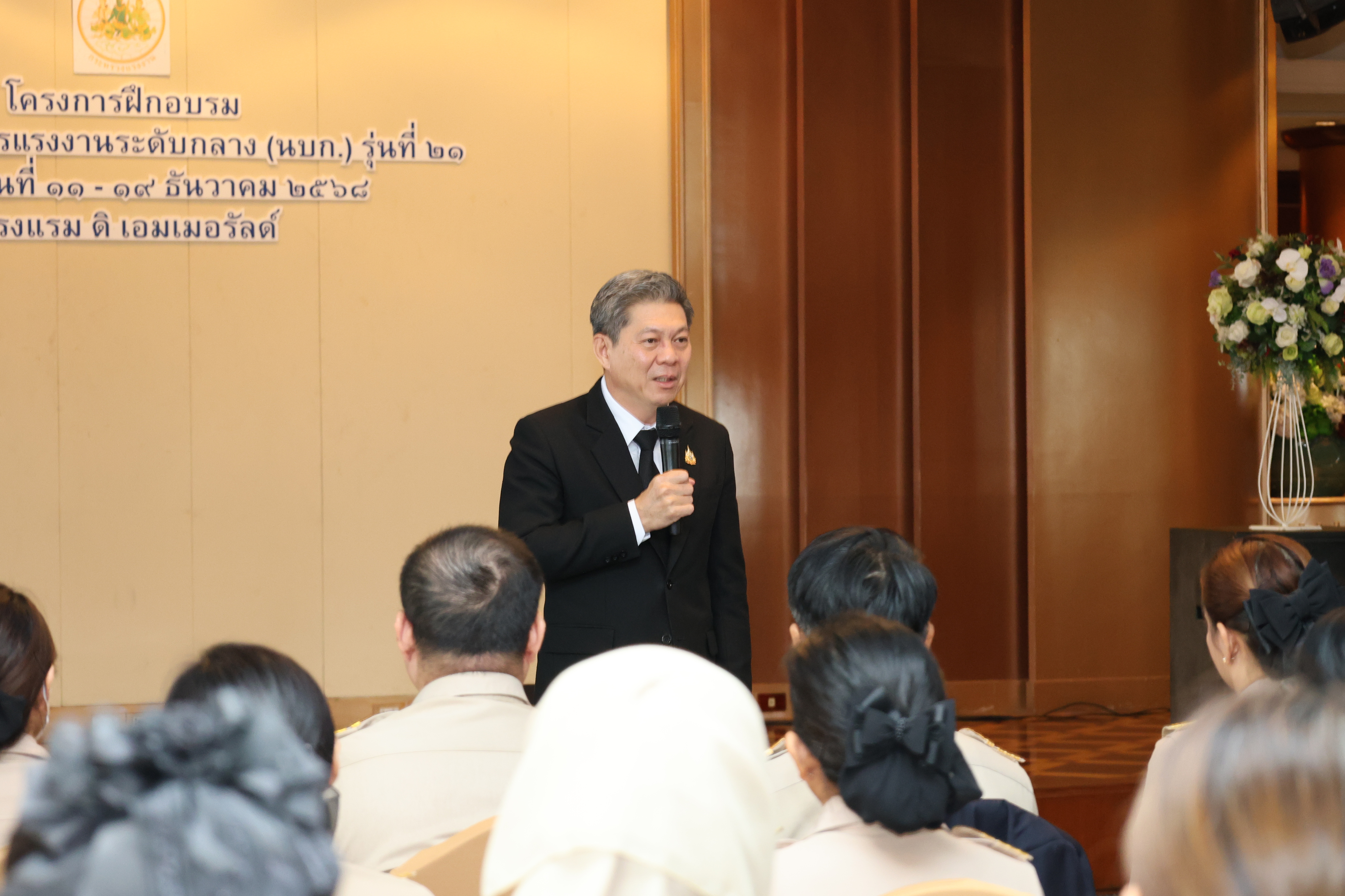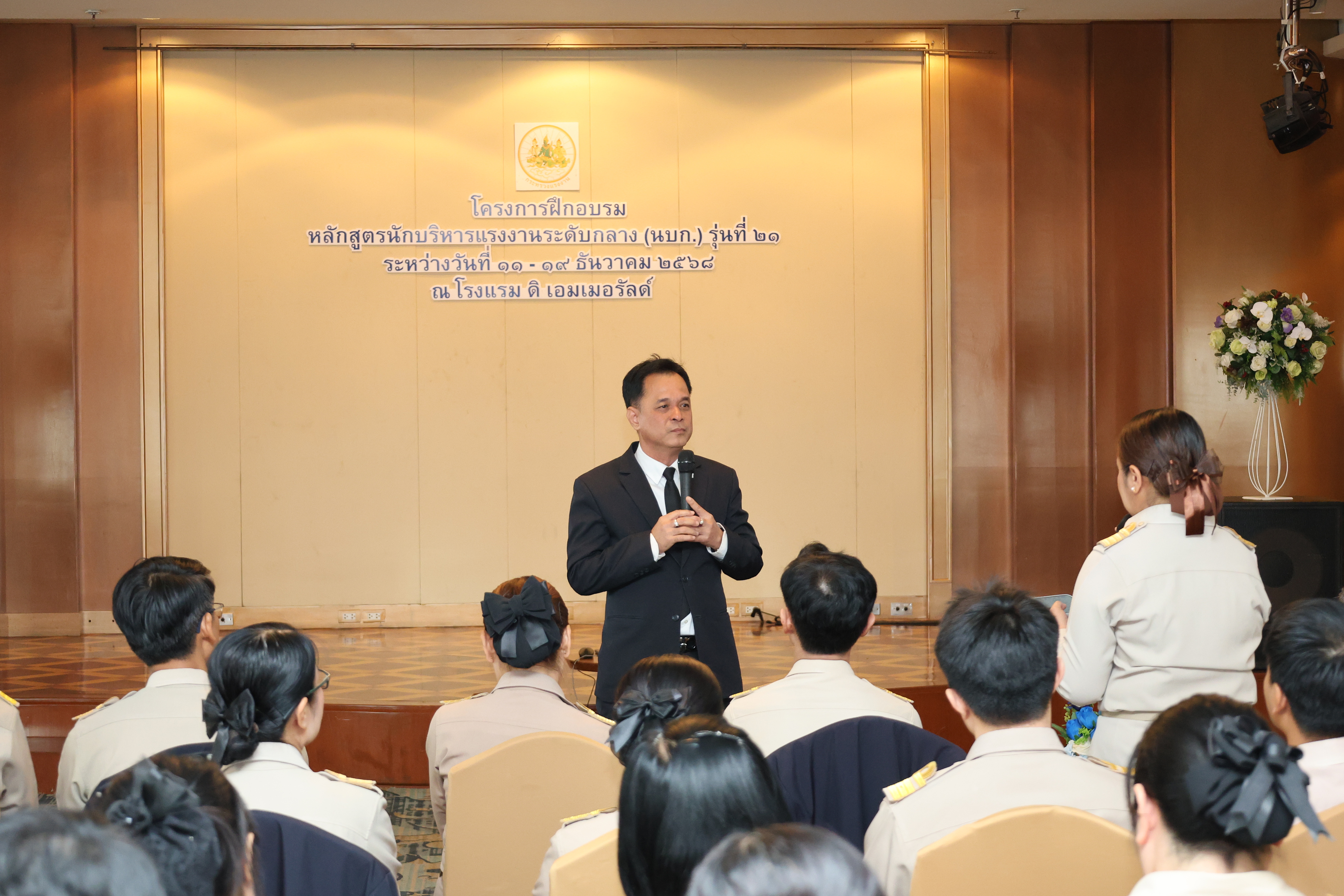 สำหรับหลักสูตรดังกล่าว สำนักงานปลัดกระทรวงแรงงานจัดขึ้น มีวัตถุประสงค์เพื่อเสริมศักยภาพในการปฏิบัติงานและเตรียมความพร้อมให้กับผู้เข้ารับการอบรม เพื่อก้าวขึ้นสู่การเป็นหัวหน้างาน มีกิจกรรมการเรียนรู้แบบผสมผสาน ประกอบด้วย การรับฟังบรรยายจากวิทยากรผู้ทรงคุณวุฒิ การทำกิจกรรมกลุ่ม การเรียนรู้ผ่านการทำผลงานเชิงวิชาการ และการศึกษาดูงาน ซึ่งผู้เข้ารับการอบรมจะได้แลกเปลี่ยนประสบการณ์ที่เป็นประโยชน์ในการปฏิบัติงานและเกิดเครือข่ายการทำงานที่มีความเป็นหนึ่งเดียวกัน มีความพร้อมในการปฏิบัติงานเพื่อขับเคลื่อนภารกิจของสำนักงานปลัดกระทรวงแรงงานได้อย่างมีประสิทธิภาพต่อไป ซึ่งการฝึกอบรมเริ่มตั้งแต่วันที่ 11 – 19 ธันวาคม 2568 รวมระยะเวลา 9 วัน โดยมีผู้เข้ารับการอบรมเป็นข้าราชการระดับชำนาญการ ในสังกัดสำนักงานปลัดกระทรวงแรงงาน จำนวน 50 คน