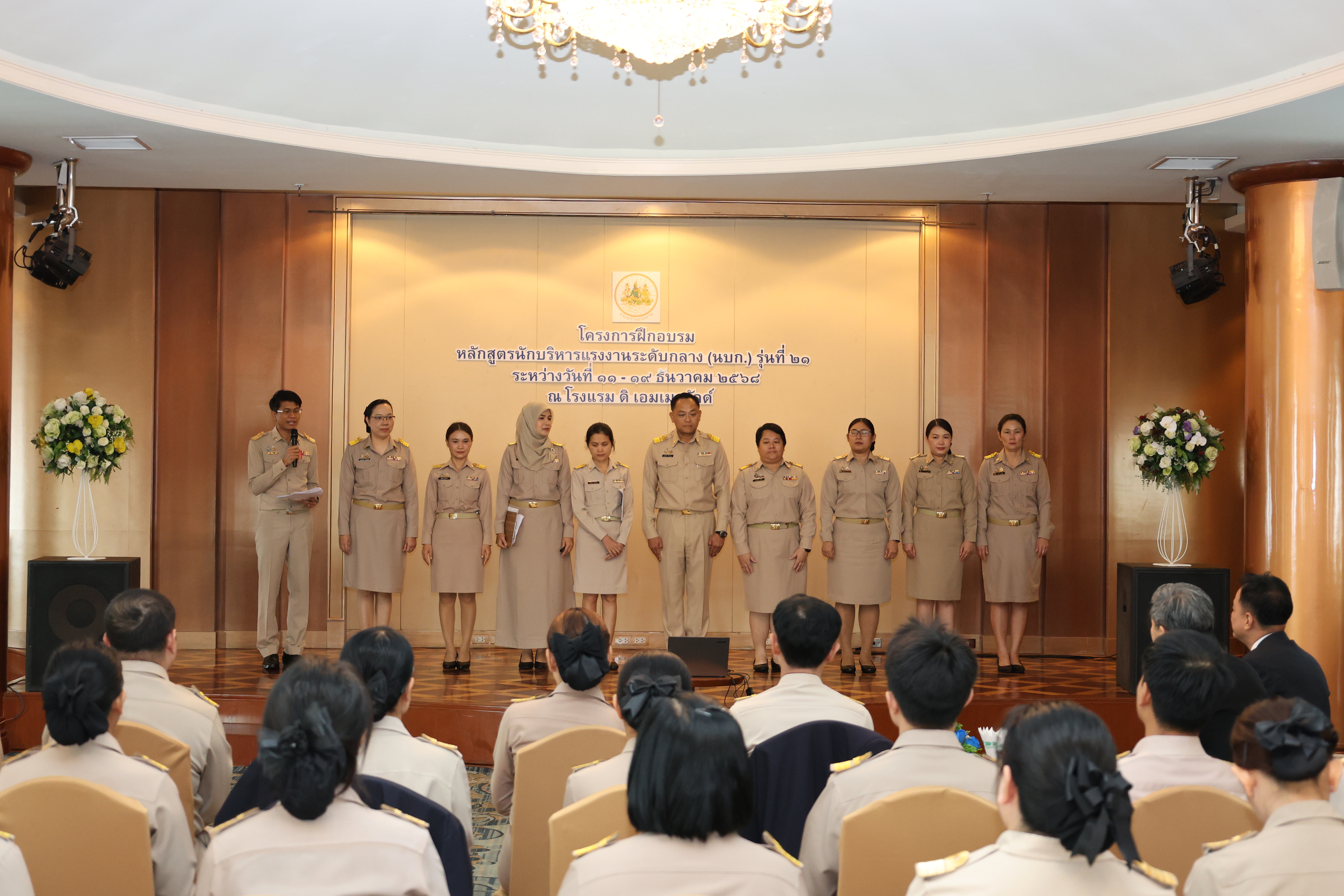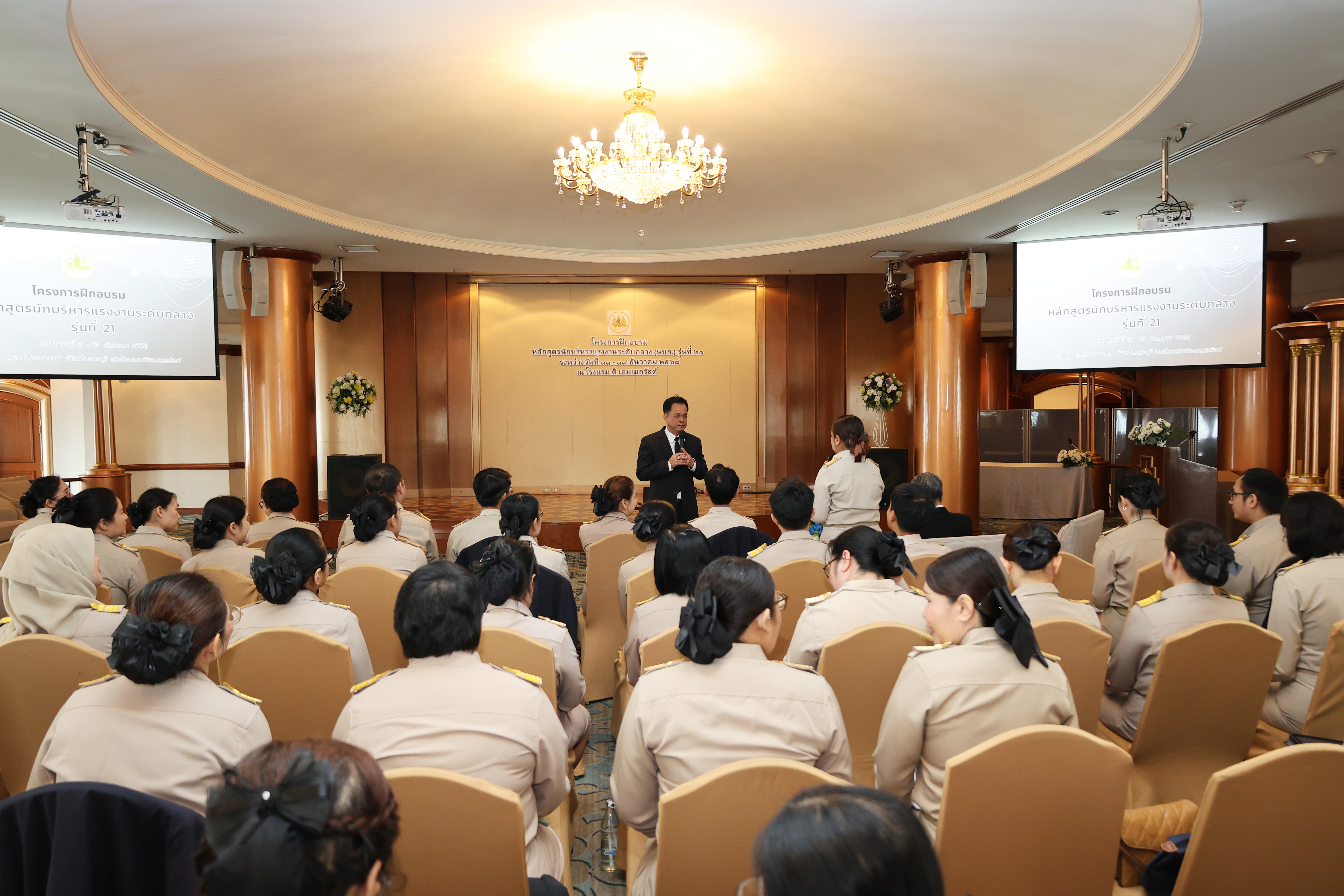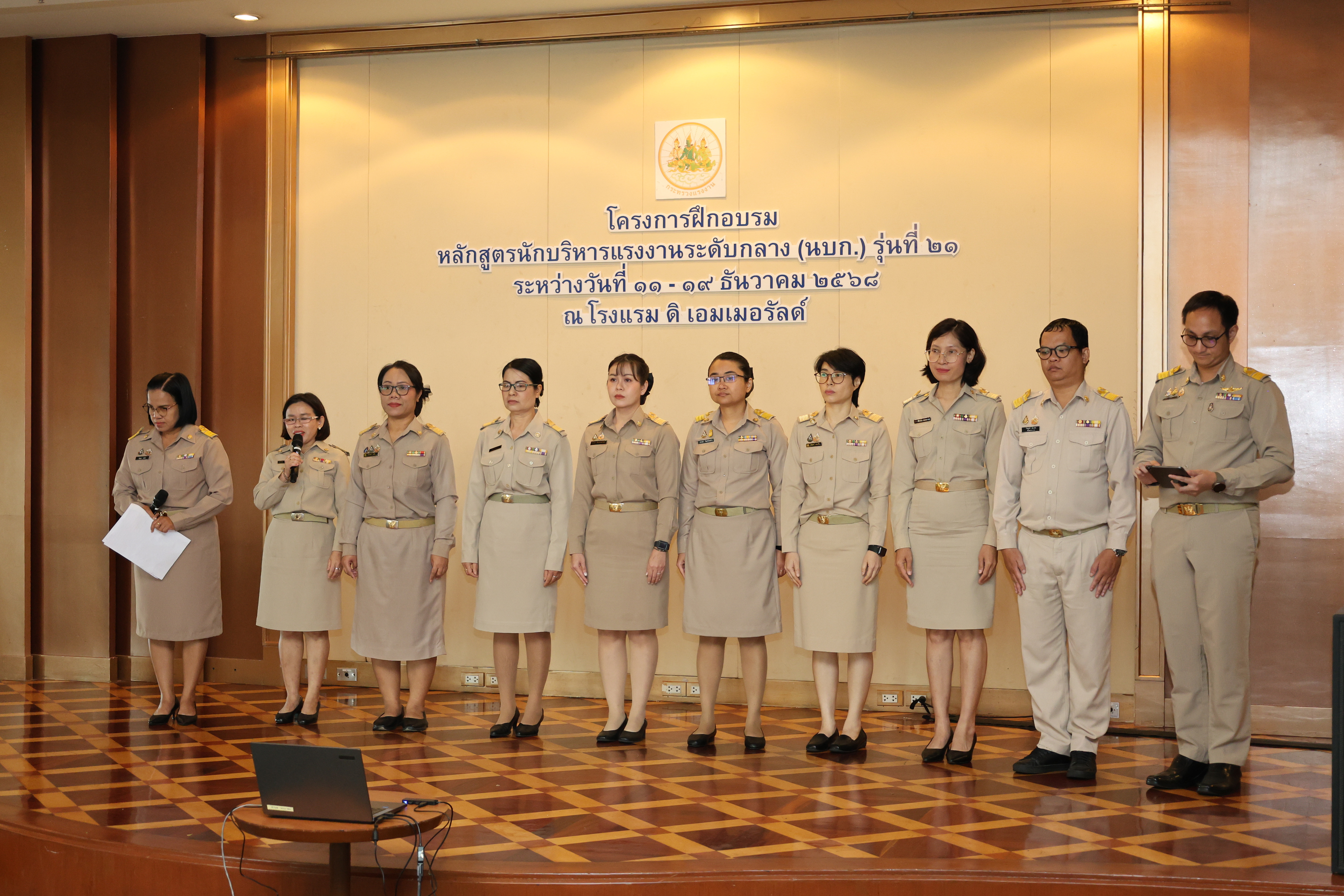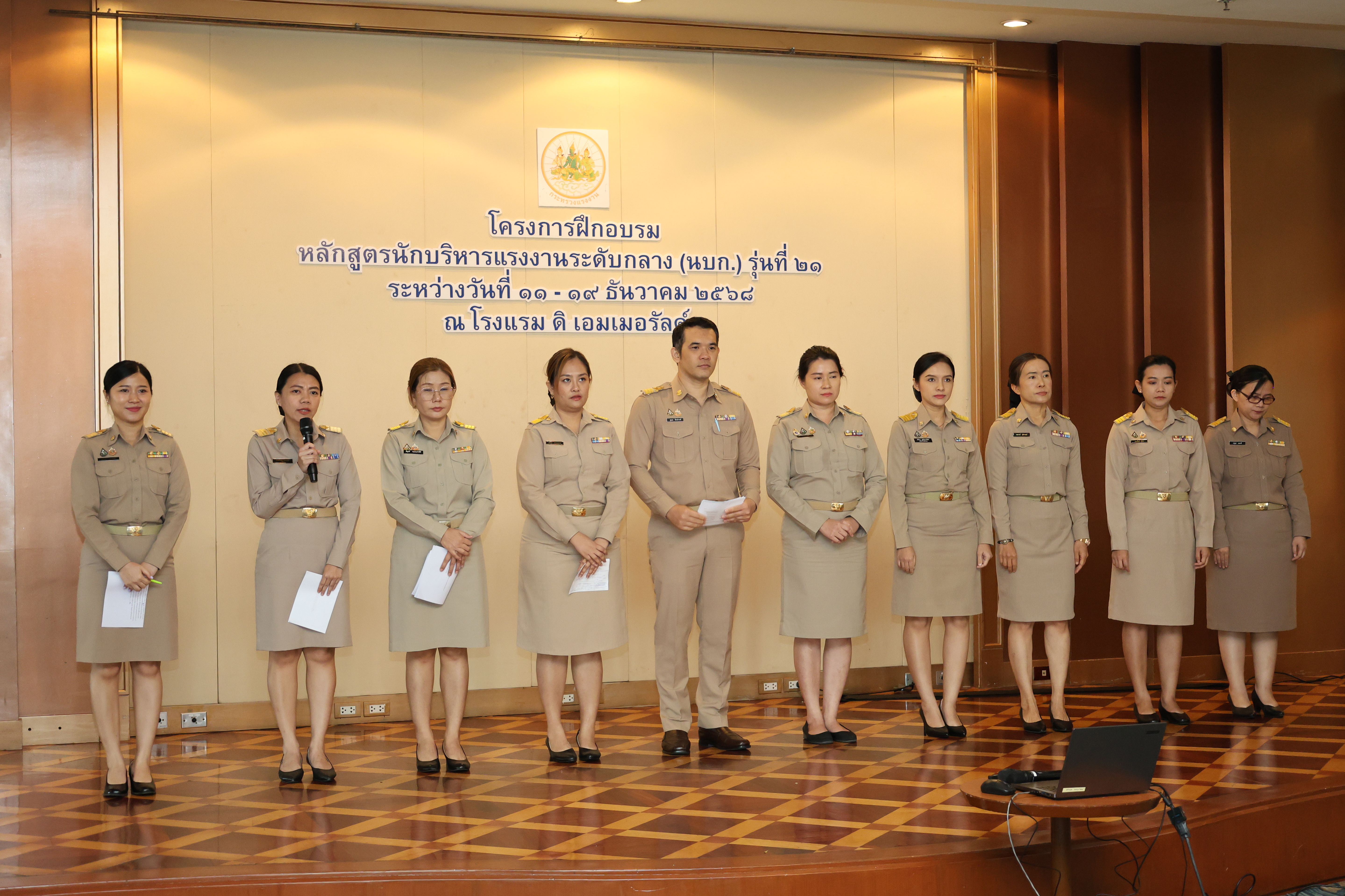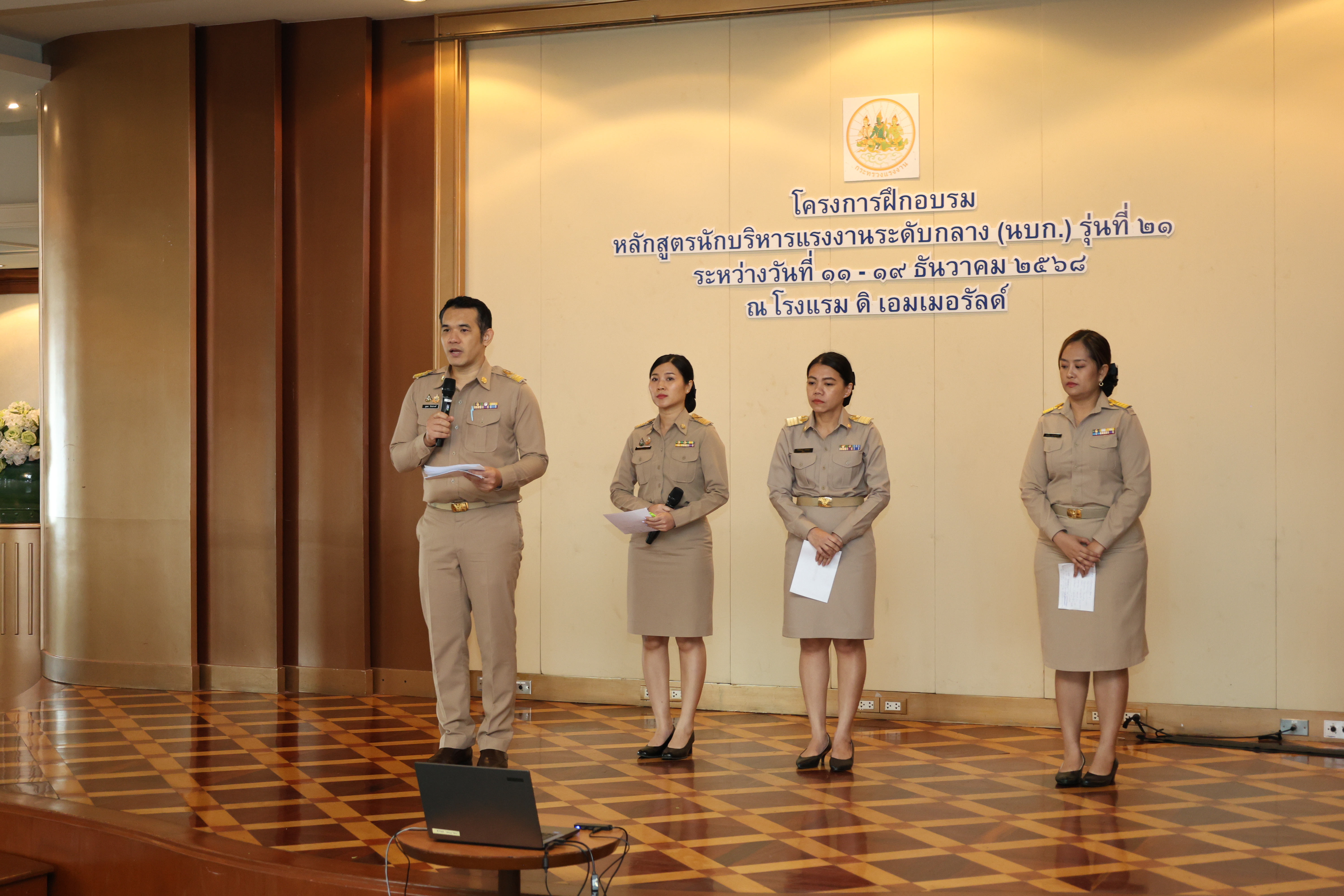 สำหรับหลักสูตรดังกล่าว สำนักงานปลัดกระทรวงแรงงานจัดขึ้น มีวัตถุประสงค์เพื่อเสริมศักยภาพในการปฏิบัติงานและเตรียมความพร้อมให้กับผู้เข้ารับการอบรม เพื่อก้าวขึ้นสู่การเป็นหัวหน้างาน มีกิจกรรมการเรียนรู้แบบผสมผสาน ประกอบด้วย การรับฟังบรรยายจากวิทยากรผู้ทรงคุณวุฒิ การทำกิจกรรมกลุ่ม การเรียนรู้ผ่านการทำผลงานเชิงวิชาการ และการศึกษาดูงาน ซึ่งผู้เข้ารับการอบรมจะได้แลกเปลี่ยนประสบการณ์ที่เป็นประโยชน์ในการปฏิบัติงานและเกิดเครือข่ายการทำงานที่มีความเป็นหนึ่งเดียวกัน มีความพร้อมในการปฏิบัติงานเพื่อขับเคลื่อนภารกิจของสำนักงานปลัดกระทรวงแรงงานได้อย่างมีประสิทธิภาพต่อไป ซึ่งการฝึกอบรมเริ่มตั้งแต่วันที่ 11 – 19 ธันวาคม 2568 รวมระยะเวลา 9 วัน โดยมีผู้เข้ารับการอบรมเป็นข้าราชการระดับชำนาญการ ในสังกัดสำนักงานปลัดกระทรวงแรงงาน จำนวน 50 คน