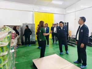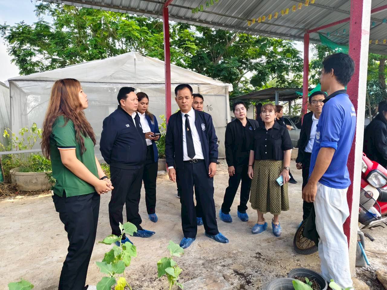 จากนั้น ผู้ตรวจราชการกระทรวงแรงงาน และคณะ ตรวจเยี่ยมการบูรณาการด้านแรงงานระหว่างหน่วยงานกระทรวงแรงงานกับสำนักงานการปฏิรูปที่ดินเพื่อเกษตรกรรม ในโครงการวิสาหกิจชุมชนเกษตรปลอดภัยสูง เพื่อติดตามผลการบูรณาการด้านแรงงานในการส่งเสริมอาชีพและรายได้ให้กับชุมชนอย่างยั่งยืน ณ โครงการวิสาหกิจชุมชนเกษตรปลอดภัยสูง ตำบลท่าพลับ อำเภอบ้านโพธิ์ จังหวัดฉะเชิงเทรา