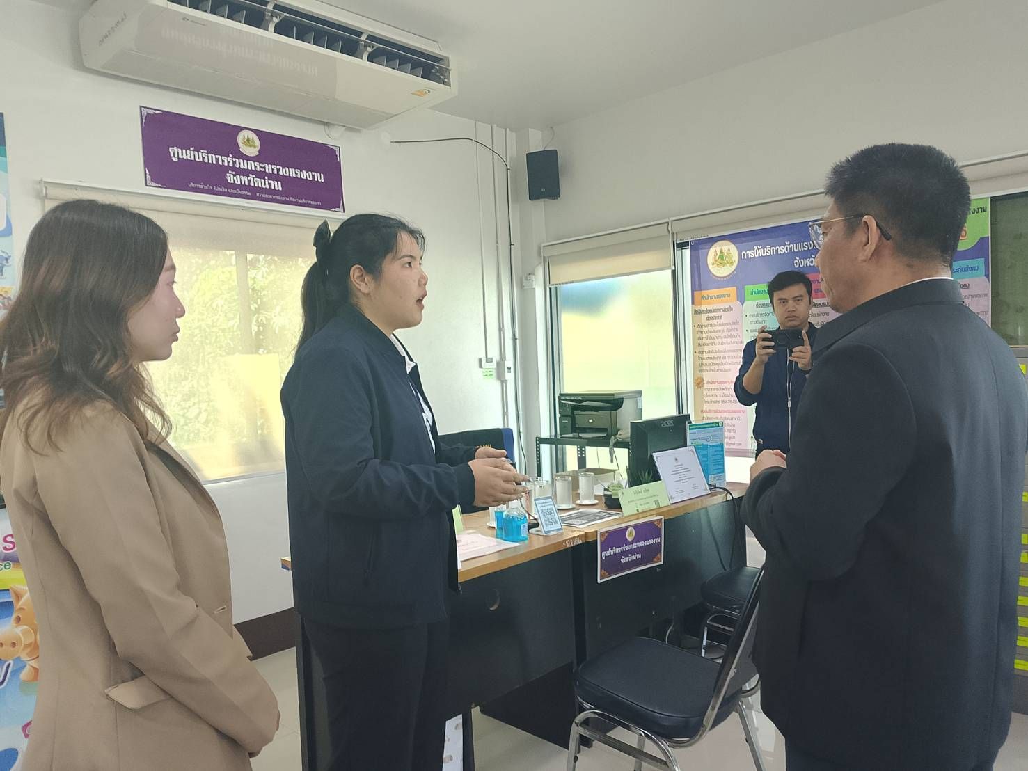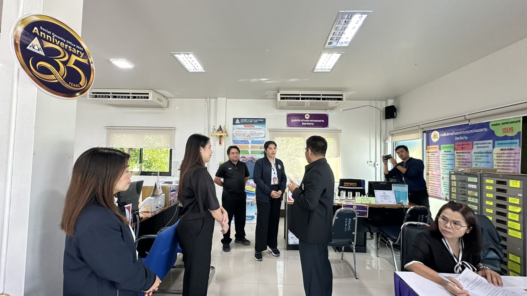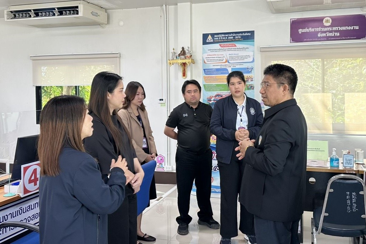 วันที่ 27 กุมภาพันธ์ 2569 เวลา 09.00 น. ว่าที่ร้อยตรี สมศักดิ์ พรหมดำ ผู้ตรวจราชการกระทรวงแรงงาน และคณะ ลงพื้นที่ตรวจเยี่ยมการดำเนินงานและการให้บริการของศูนย์บริการร่วมกระทรวงแรงงานจังหวัดน่าน ในการนี้ ผู้ตรวจราชการกระทรวงแรงงาน และคณะ ได้พบปะเจ้าหน้าที่ผู้ปฏิบัติงาน พูดคุยให้กำลังใจ พร้อมทั้งกำชับให้หน่วยงานในพื้นที่บูรณาการการทำงานร่วมกันอย่างใกล้ชิด รับฟังปัญหาอุปสรรคและความต้องการของประชาชนในพื้นที่ เพื่อให้การคุ้มครองสิทธิแรงงานเป็นไปอย่างทั่วถึงและมีประสิทธิภาพ ณ อาคารสำนักงานประกันสังคมจังหวัดน่าน สาขาปัว ตำบลสถาน อำเภอปัว จังหวัดน่าน