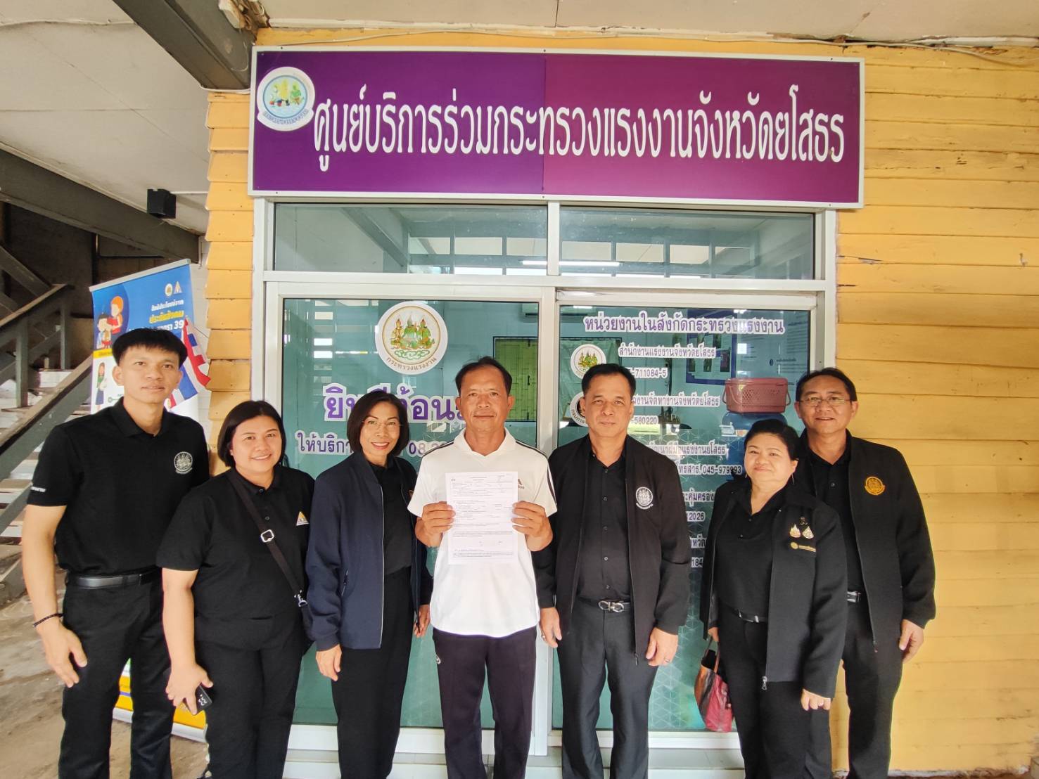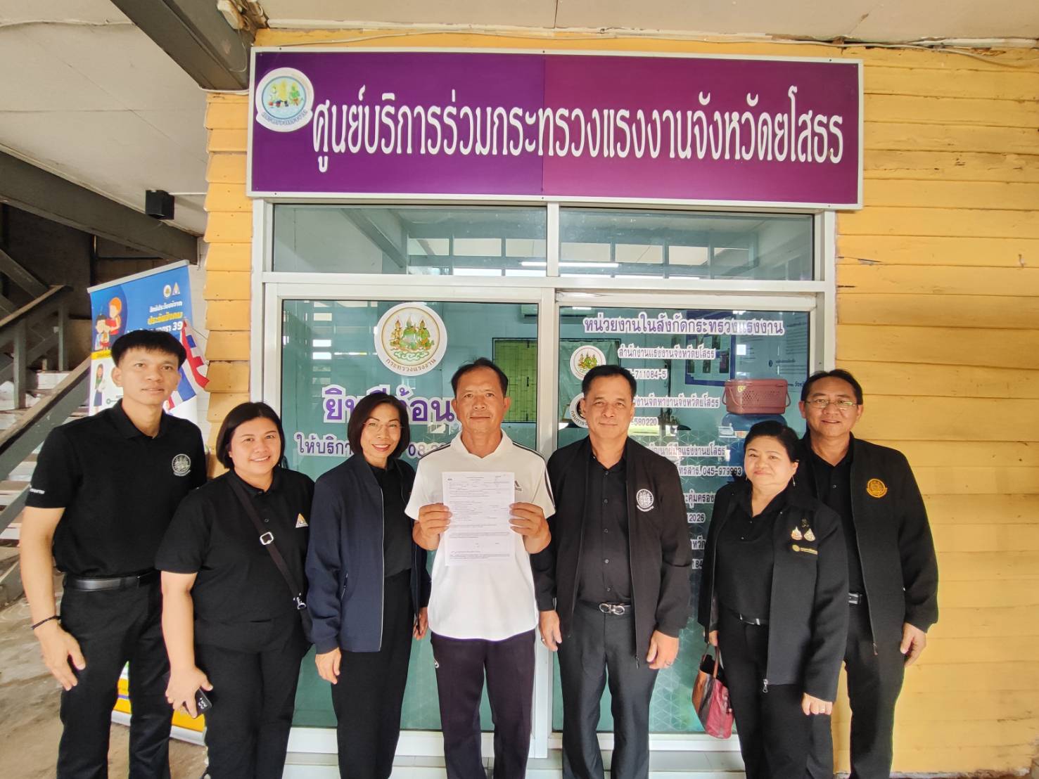 ลงพื้นที่ตรวจเยี่ยมศูนย์บริการร่วมกระทรวงแรงงานจังหวัดยโสธร เพื่อติดตามการดำเนินงานการให้บริการประชาชนแบบเบ็ดเสร็จ (One Stop Service) พร้อมเน้นย้ำเจ้าหน้าที่เร่งประชาสัมพันธ์สิทธิประโยชน์ด้านแรงงานให้ทั่วถึง และร่วมพูดคุยให้กำลังใจผู้มาใช้บริการ เพื่อยกระดับคุณภาพชีวิตแรงงานในพื้นที่ โดยมี นางสาวสมปอง จันทะศรี แรงงานจังหวัดยโสธร ให้การต้อนรับ ณ ศูนย์บริการร่วมกระทรวงแรงงาน จังหวัดยโสธร ที่ว่าการอำเภอเลิงนกทา (หลังเก่า) ตำบลสามแยก อำเภอเลิงนกทา จังหวัดยโสธร