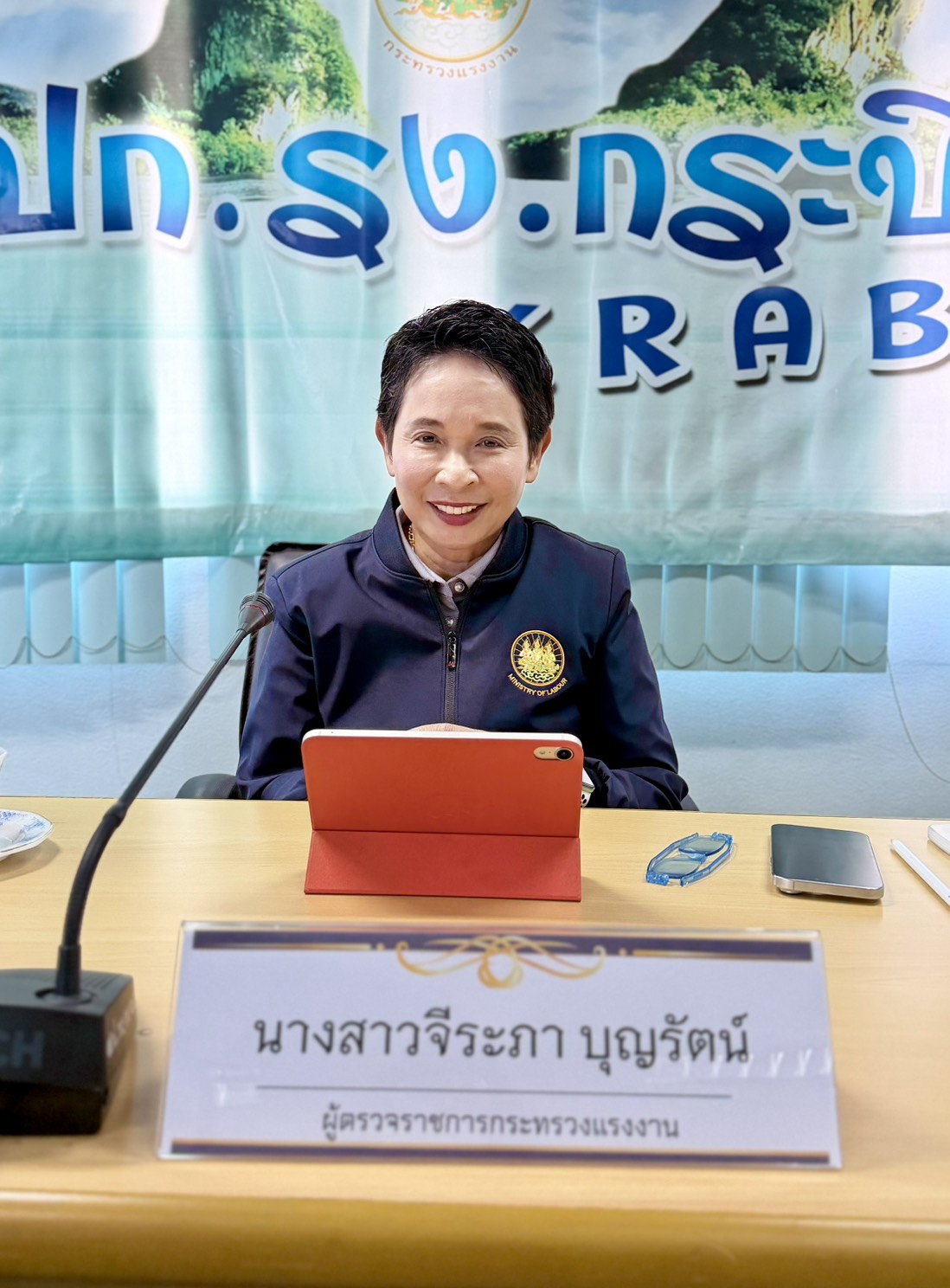 วันที่ 24 กุมภาพันธ์ 2569 เวลา 10.00 น. นางสาวจีระภา บุญรัตน์ ผู้ตรวจราชการกระทรวงแรงงาน เป็นประธานการประชุมหัวหน้าส่วนราชการในสังกัดกระทรวงแรงงานจังหวัดกระบี่ เพื่อตรวจติดตามผลการปฏิบัติงานตามแผนการตรวจราชการสำนักงานปลัดกระทรวงแรงงาน ประจำปีงบประมาณ พ.ศ. 2569 โดยมี