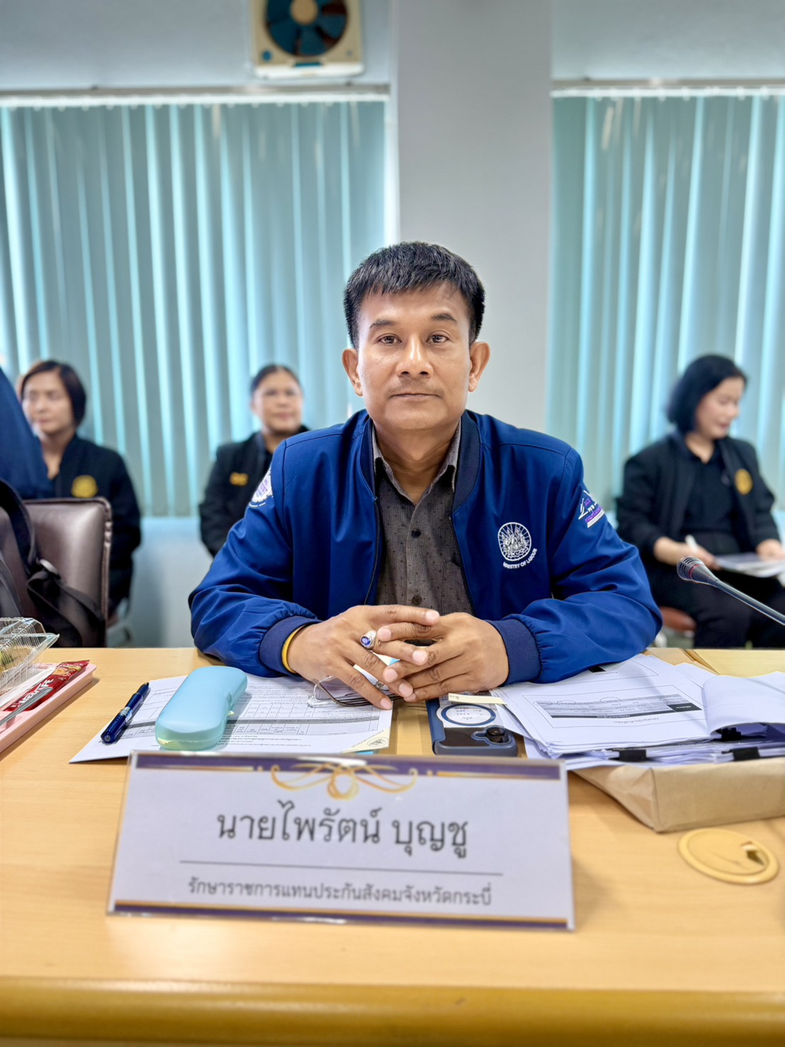 จ่าเอก ประยงค์ บุญช่วย ผู้ตรวจราชการกรม กรมพัฒนาฝีมือแรงงาน เข้าร่วมประชุมด้วย เพื่อตรวจติดตามความก้าวหน้าของผลการปฏิบัติงานตามแผนการตรวจราชการของผู้ตรวจราชการ กระทรวงแรงงาน ประจำปีงบประมาณ พ.ศ. 2569 รอบที่ 2 (Progress Review) ณ ห้องประชุมแรงงาน 4 ศูนย์ราชการกระทรวงแรงงานจังหวัดกระบี่ อำเภอเมืองกระบี่ จังหวัดกระบี่