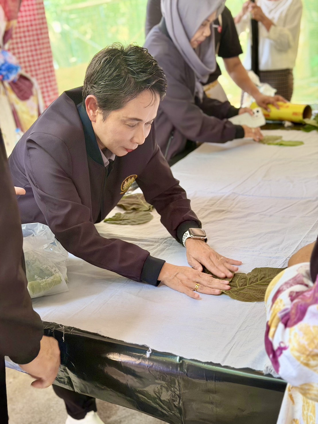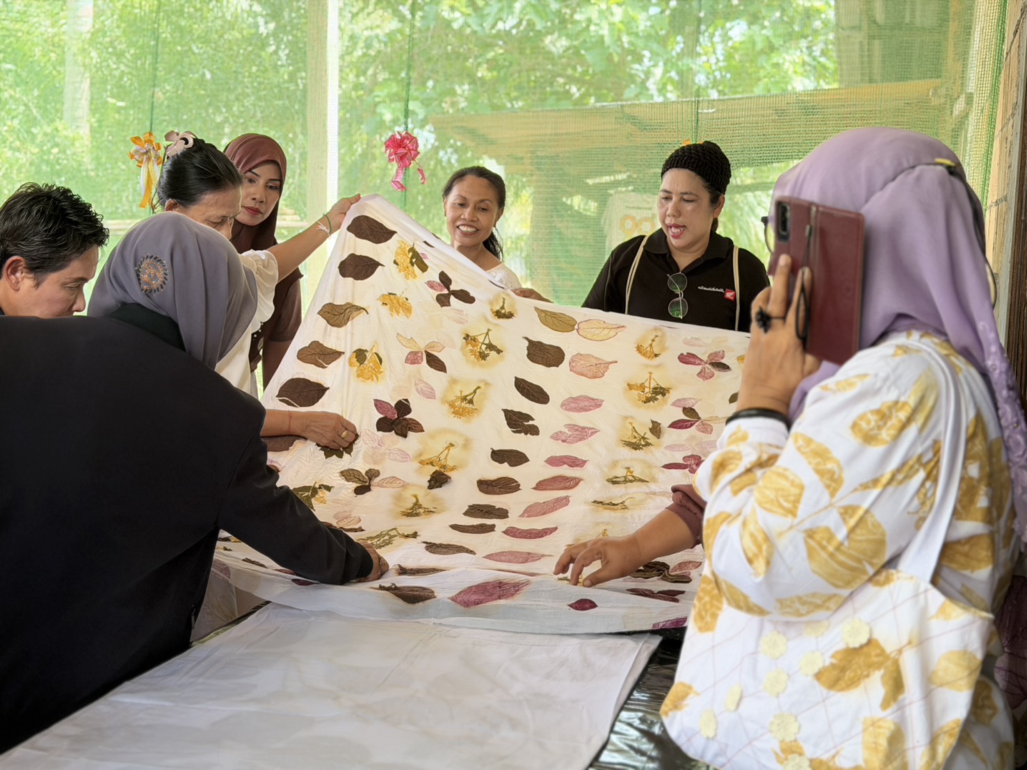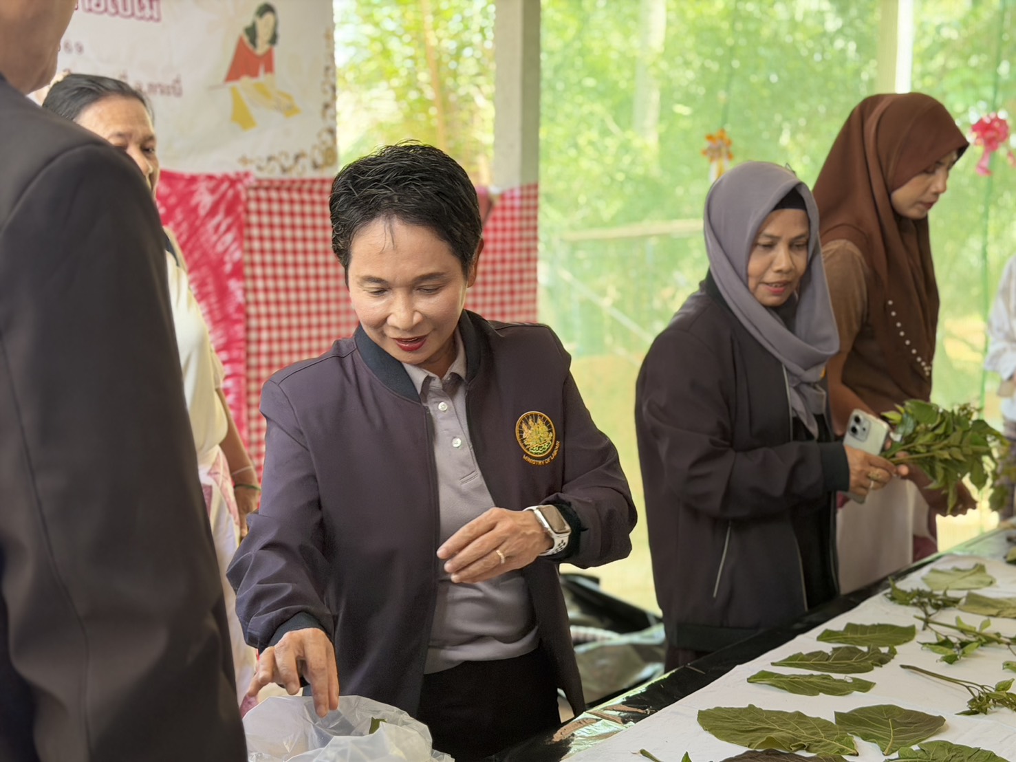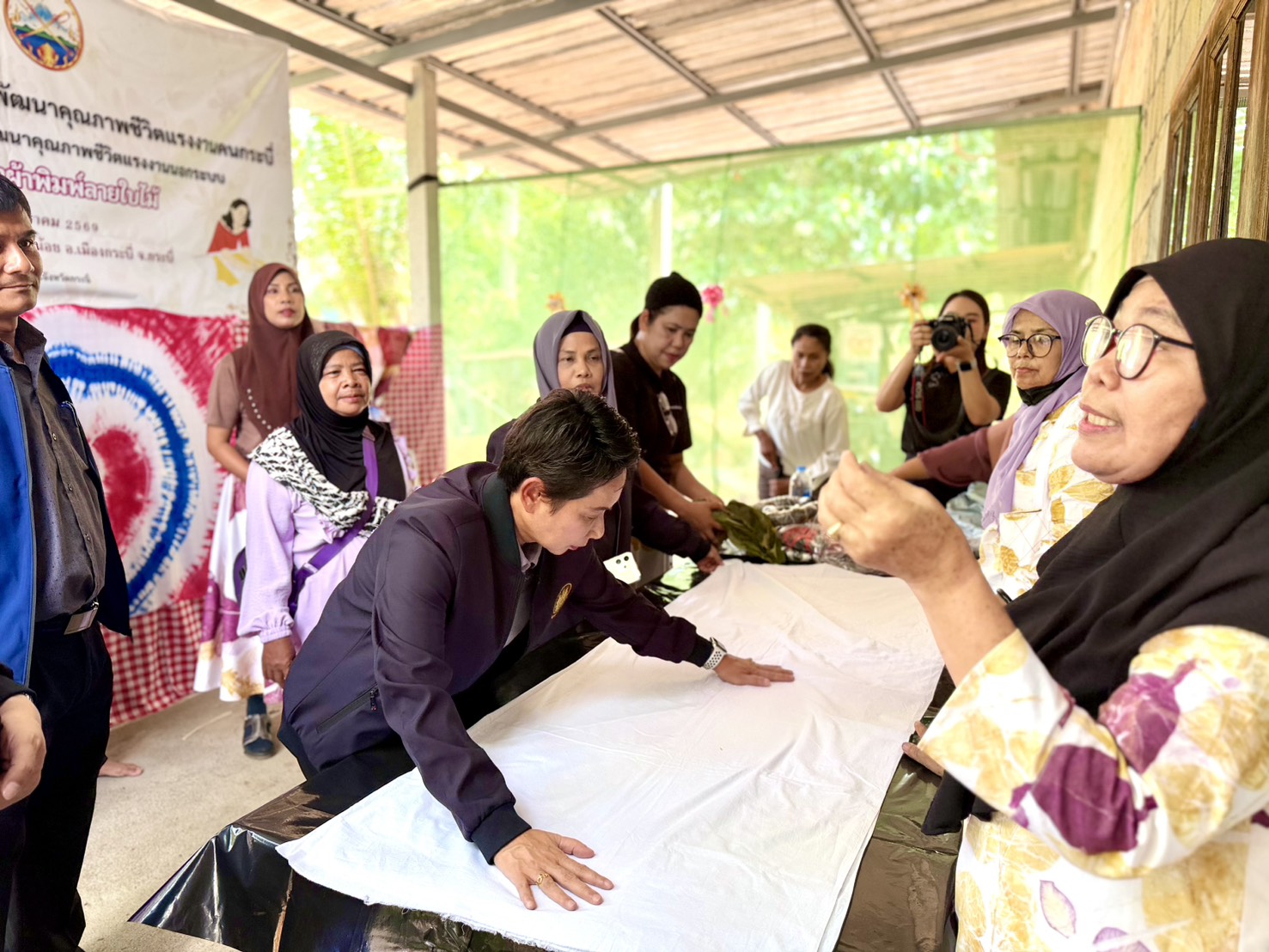 ในการลงพื้นที่ครั้งนี้ ผู้ตรวจราชการกระทรวงแรงงาน และคณะ ได้เยี่ยมชมและให้กำลังใจกลุ่มทำผ้าพิมพ์ลายใบไม้และแปรรูปเป็นกระเป๋า กระโปรง ซึ่งเป็นการนำทรัพยากรธรรมชาติในท้องถิ่นมาสร้างมูลค่าเพิ่ม (Eco-print)