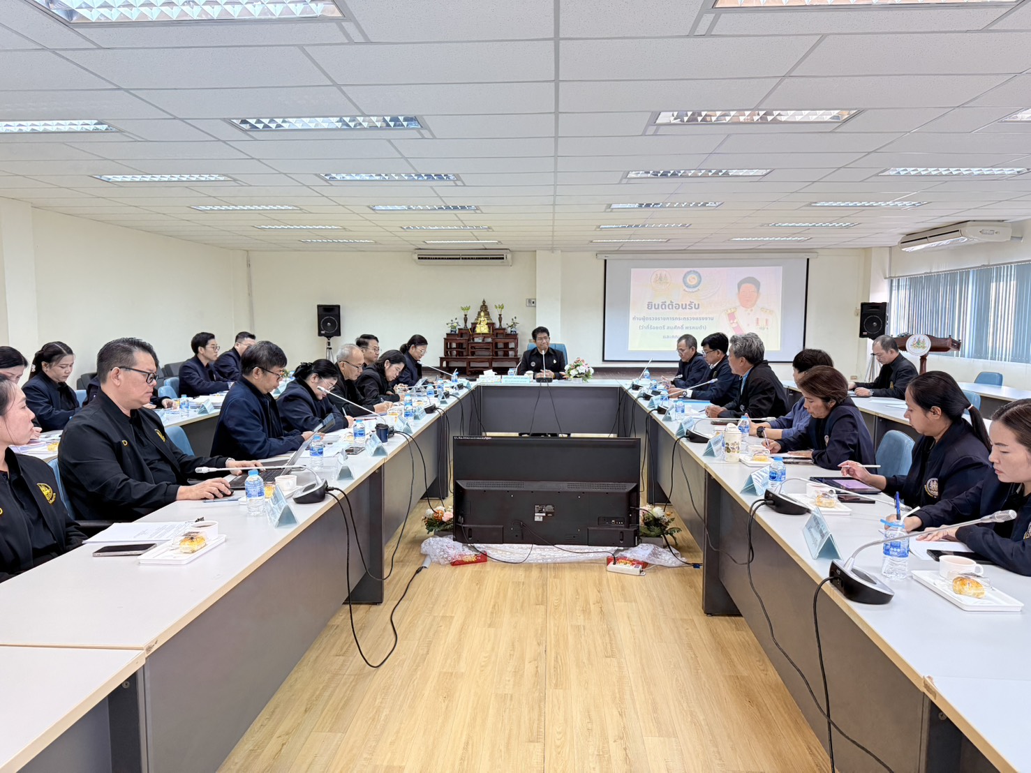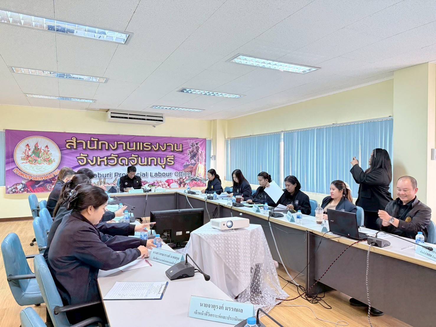 วันที่ 18 กุมภาพันธ์ 2569 เวลา 09.00 น. ว่าที่ร้อยตรี สมศักดิ์ พรหมดำ ผู้ตรวจราชการกระทรวงแรงงาน เป็นประธานการประชุมสำนักงานแรงงานจังหวัดจันทบุรี เพื่อตรวจติดตามความก้าวหน้าผลการปฏิบัติงานตามแผนการตรวจราชการของสำนักงานปลัดกระทรวงแรงงาน ประจำปี 2569 ณ ห้องประชุม 3 ชั้น 2 อาคารศูนย์ราชการกระทรวงแรงงานจังหวัดจันทบุรี จากนั้น เวลา 10.00 น. ผู้ตรวจราชการกระทรวงแรงงาน เป็นประธานการประชุมหัวหน้าส่วนราชการสังกัดกระทรวงแรงงานจังหวัดจันทบุรี เพื่อตรวจติดตามความก้าวหน้าของผลการปฏิบัติงานตามประเด็นแผนการตรวจราชการของผู้ตรวจราชการกระทรวงแรงงาน ประจำปีงบประมาณ พ.ศ. 2569 รอบที่ 2 (Progress Review) เพื่อรับฟังความก้าวหน้าและปัญหาอุปสรรคในการขับเคลื่อนภารกิจด้านแรงงานในระดับพื้นที่ โดยมี นายยุทธนา บัวจุน ผู้ตรวจราชการกรม กรมการจัดหางาน นายชาติวุฒิ ทองกัน ผู้ตรวจราชการกรม กรมพัฒนาฝีมือแรงงาน เข้าร่วมประชุมด้วย ณ ห้องประชุม 9 ชั้น 4 อาคารศูนย์ราชการกระทรวงแรงงานจังหวัดจันทบุรี