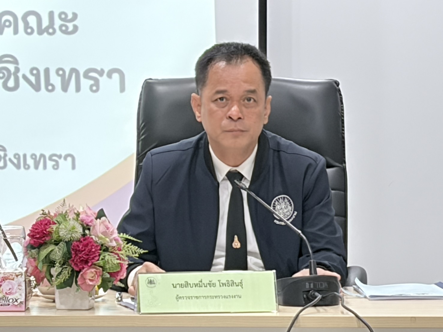 วันที่ 13 กุมภาพันธ์ 2569 เวลา 09.00 น. นายสิบหมื่นชัย โพธิสินธุ์ ผู้ตรวจราชการกระทรวงแรงงาน เป็นประธานการประชุมสำนักงานแรงงานจังหวัดฉะเชิงเทรา เพื่อตรวจติดตามผลการปฏิบัติงานตามแผนการตรวจราชการสำนักงานปลัดกระทรวงแรงงาน และประชุมหัวหน้าส่วนราชการสังกัดกระทรวงแรงงานจังหวัดฉะเชิงเทราเพื่อตรวจติดตามความก้าวหน้าของผลการปฏิบัติงานตามแผนการตรวจราชการของผู้ตรวจราชการกระทรวงแรงงาน ประจำปีงบประมาณ พ.ศ. 2569 รอบที่ 2 (Progress Review) เพื่อรับฟังความก้าวหน้าและปัญหาอุปสรรคในการขับเคลื่อนภารกิจด้านแรงงานในพื้นที่ภาคตะวันออกให้เป็นไปอย่างมีประสิทธิภาพและบรรลุเป้าหมายที่วางไว้ ณ ห้องประชุมสำนักงานประกันสังคมจังหวัดฉะเชิงเทรา อําเภอเมืองฉะเชิงเทรา จังหวัดฉะเชิงเทรา
