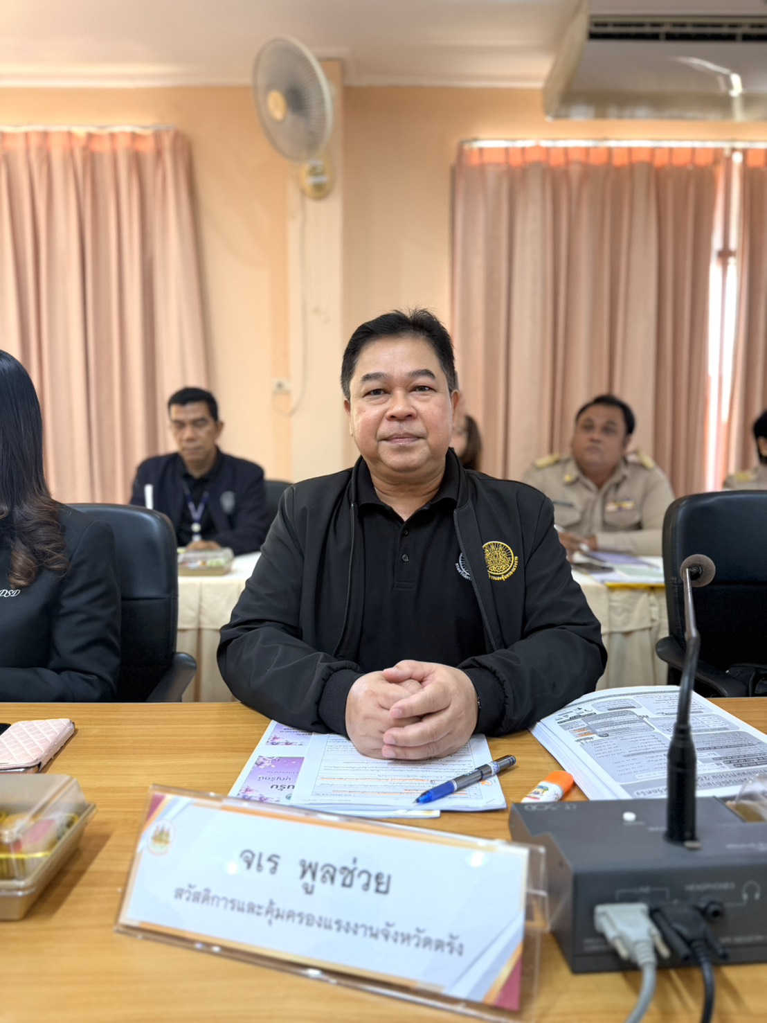 วันที่ 23 กุมภาพันธ์ 2569 เวลา 10.00 น. นางสาวจีระภา บุญรัตน์ ผู้ตรวจราชการกระทรวงแรงงาน เป็นประธานการประชุมหัวหน้าส่วนราชการสังกัดกระทรวงแรงงานจังหวัดตรัง โดยมี จ่าเอกประยงค์ บุญช่วย ผู้ตรวจราชการกรมพัฒนาฝีมือแรงงาน เข้าร่วม เพื่อตรวจติดตามผลการปฏิบัติงานตามแผนการตรวจราชการสำนักงานปลัดกระทรวงแรงงาน ประจำปีงบประมาณ พ.ศ. 2569 เพื่อตรวจติดตามความก้าวหน้าของผลการปฏิบัติงานตามแผนการตรวจราชการของผู้ตรวจราชการ กระทรวงแรงงาน ประจำปีงบประมาณ พ.ศ. 2569 รอบที่ 2 (Progress Review) ณ ห้องประชุมสำนักงานพัฒนาฝีมือแรงงานตรัง ตำบลทับเที่ยง อำเภอเมืองตรัง จังหวัดตรัง